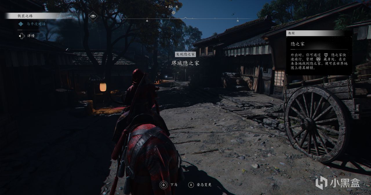 笔者提醒:隐之家是刺客组织“袖剑一揆”在日本的秘密总部,完成序章主线任务“破碎的袖剑”后解锁,玩家可以快速旅行到已解锁的隐之家位置,我们可以收集材料在藏身处升级隐之家,建议尽快升到3级,游戏内一共有79处隐之家地点。