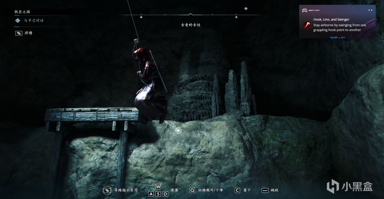 可以顺手拿两个成就,一个是荡秋千,从一个勾锁无缝衔接到下一个勾锁。