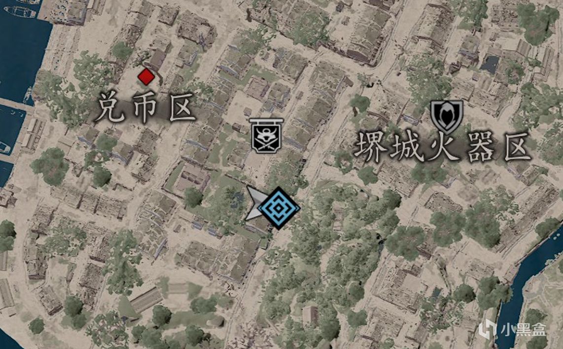 我们可以任意牵勾锁上屋顶,本作自由度极高,基本上你站在屋檐底下,抬头按Q即可拉住勾锁,按照下图的方向找第一个盒子,发现不是我们要找的盒子,这里开始就可以做无人知晓那个成就,连续施展5次暗杀(且不被人察觉或进入战斗状态)即可获得。