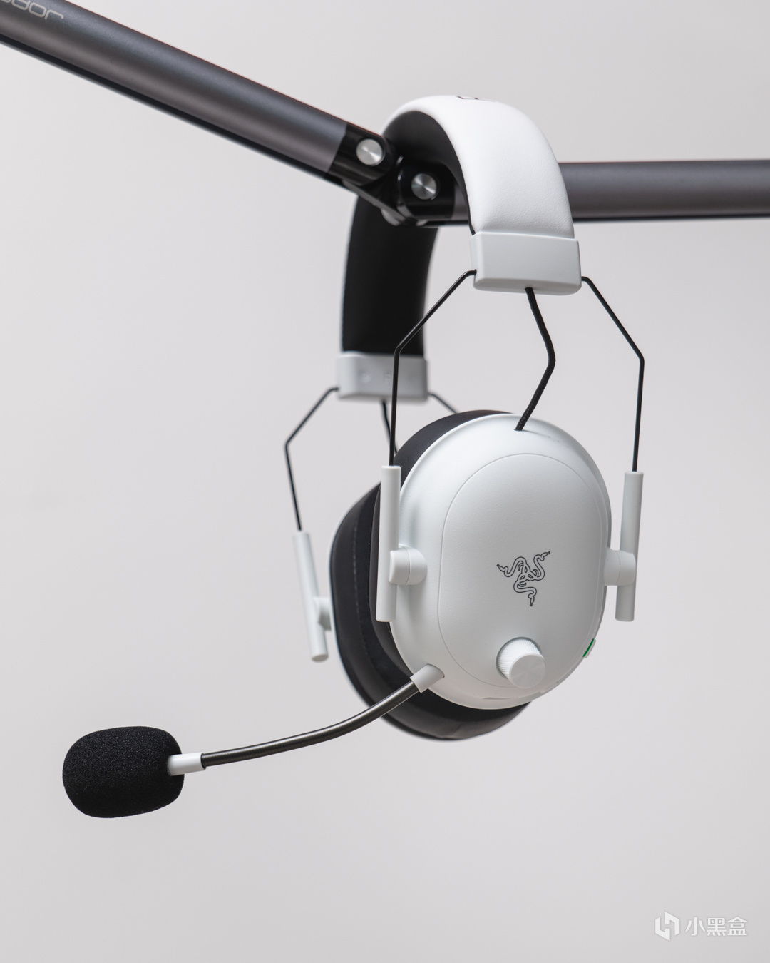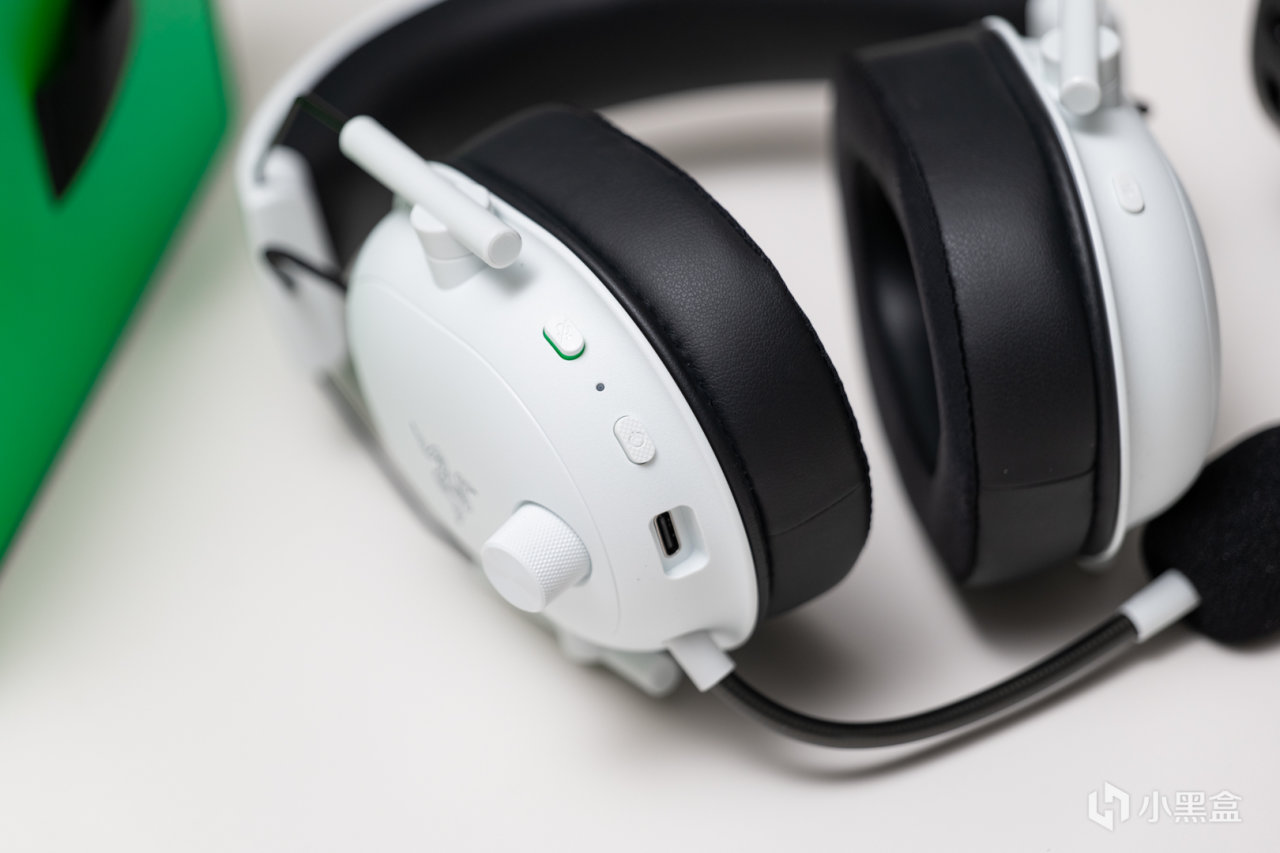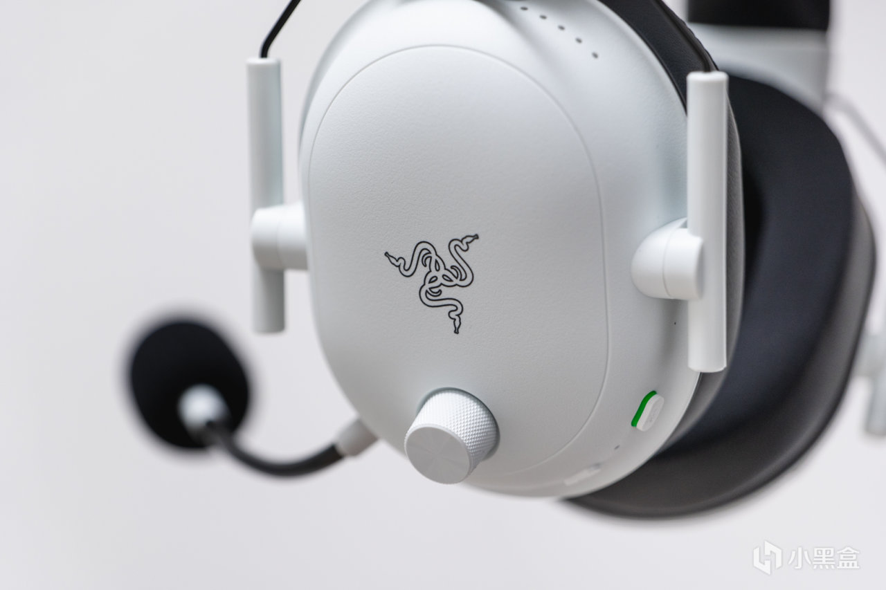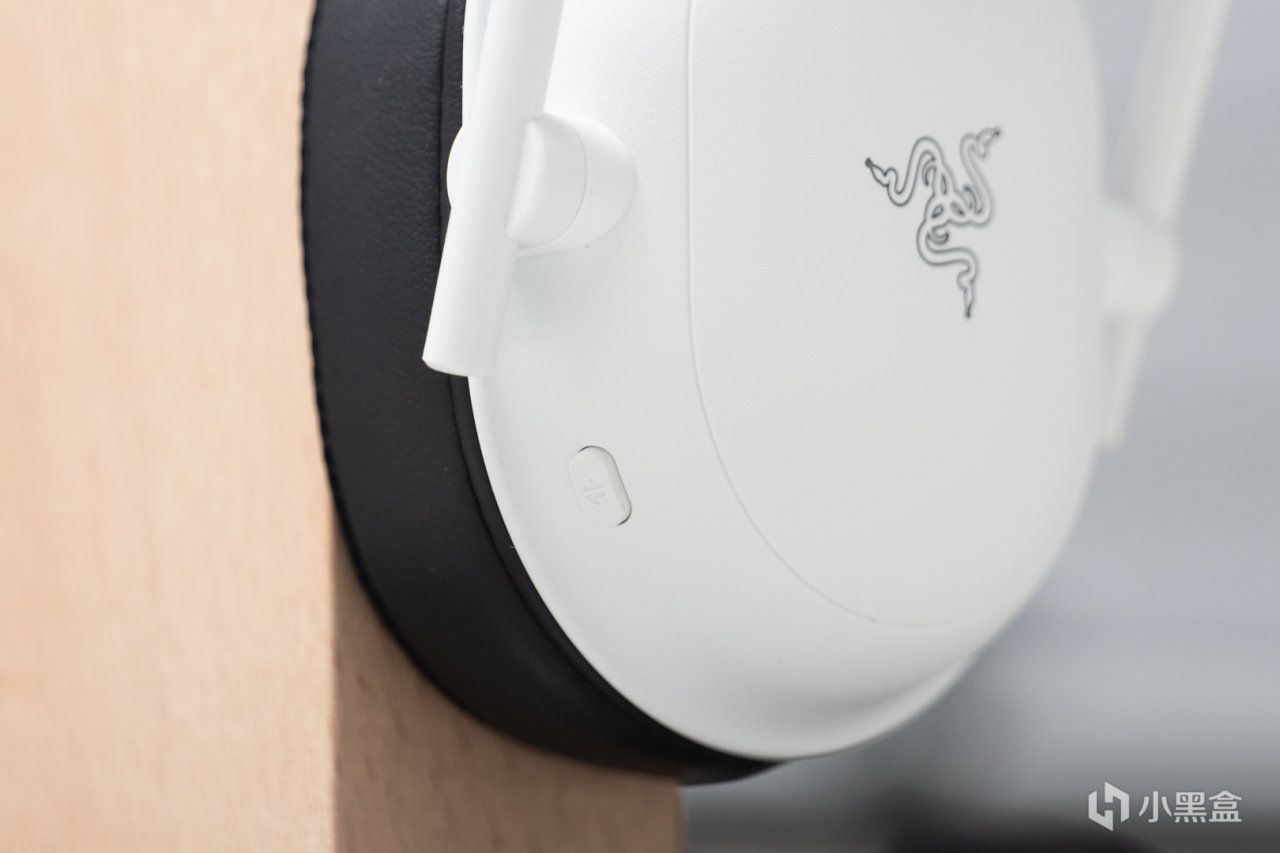 旋風黑鯊V2極速版這次支持三模連接。最高支持70小時的無線使用。通過右側耳罩下的Razer SmartSwitch按鍵,旋風黑鯊V2極速版可以在藍牙和2.4G模式下快速切換。