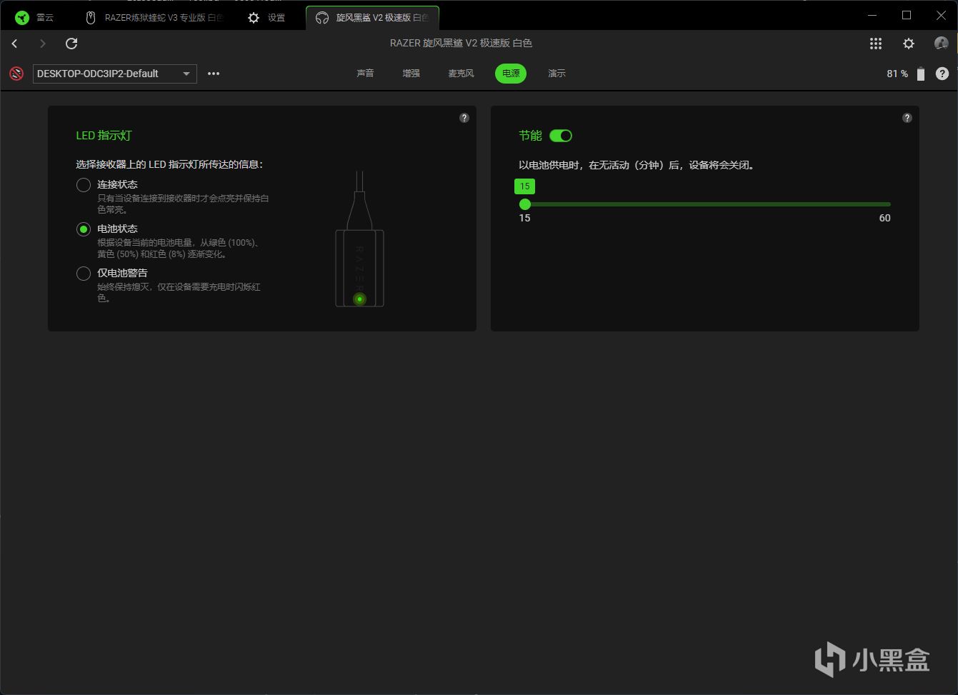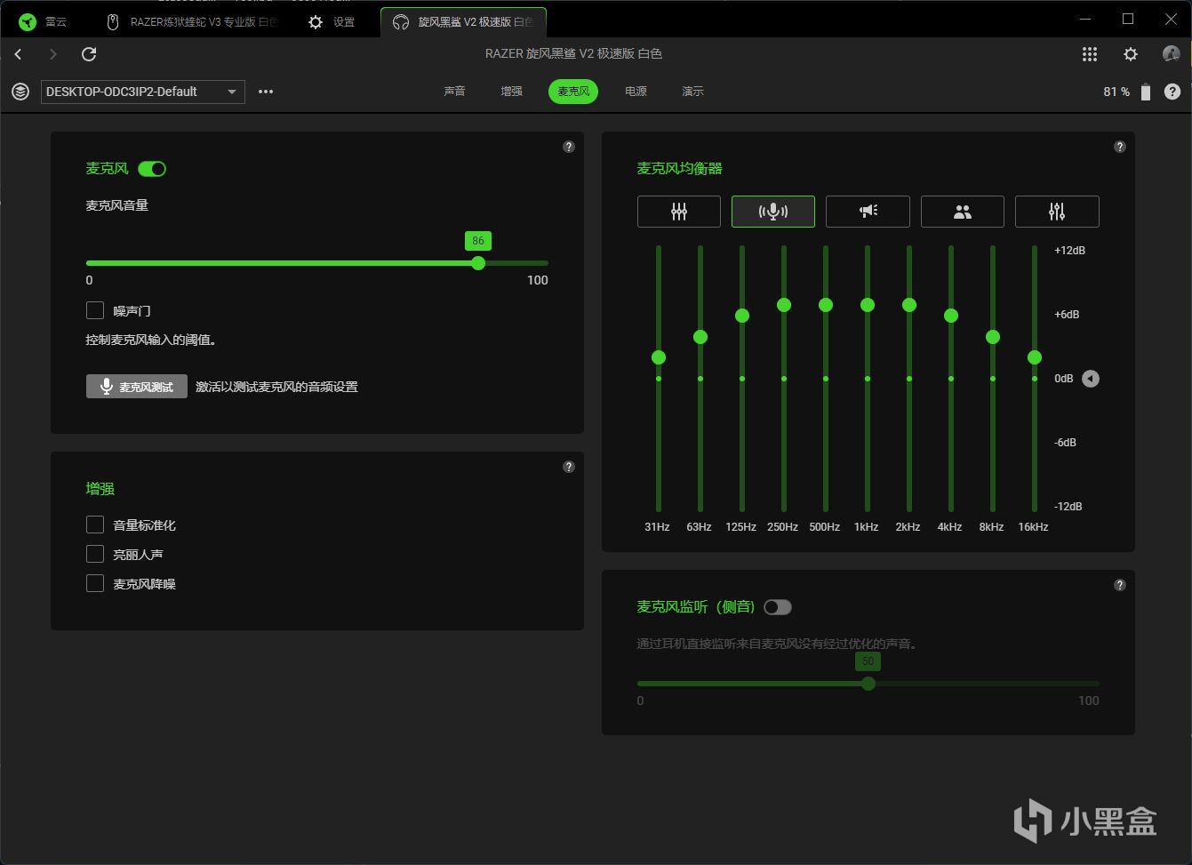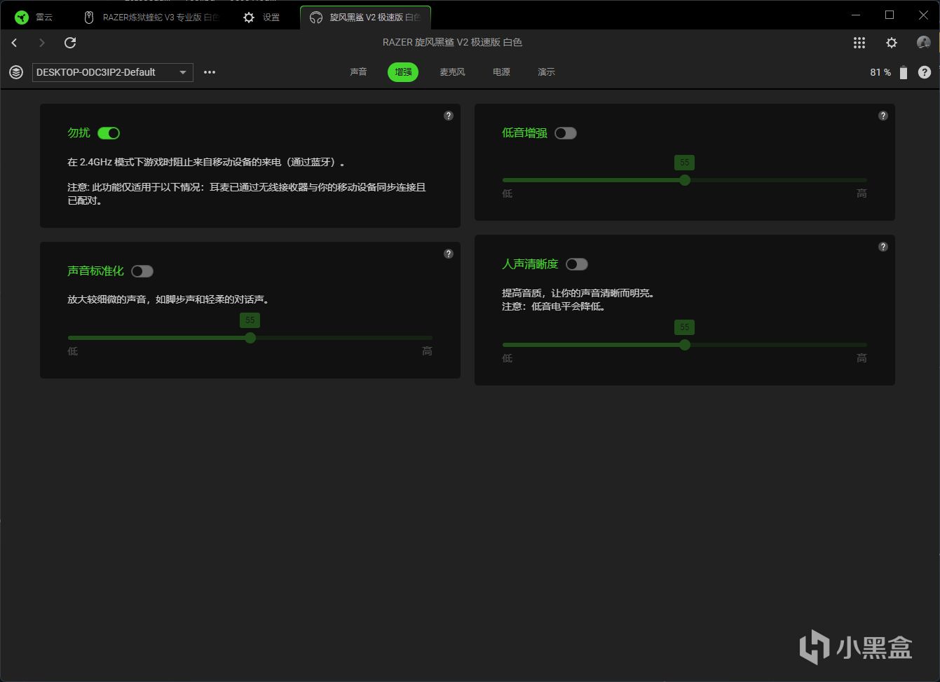 旋風黑鯊V2極速版也支持雷蛇看家的雷雲驅動,打開雷雲4,就可以看該設備