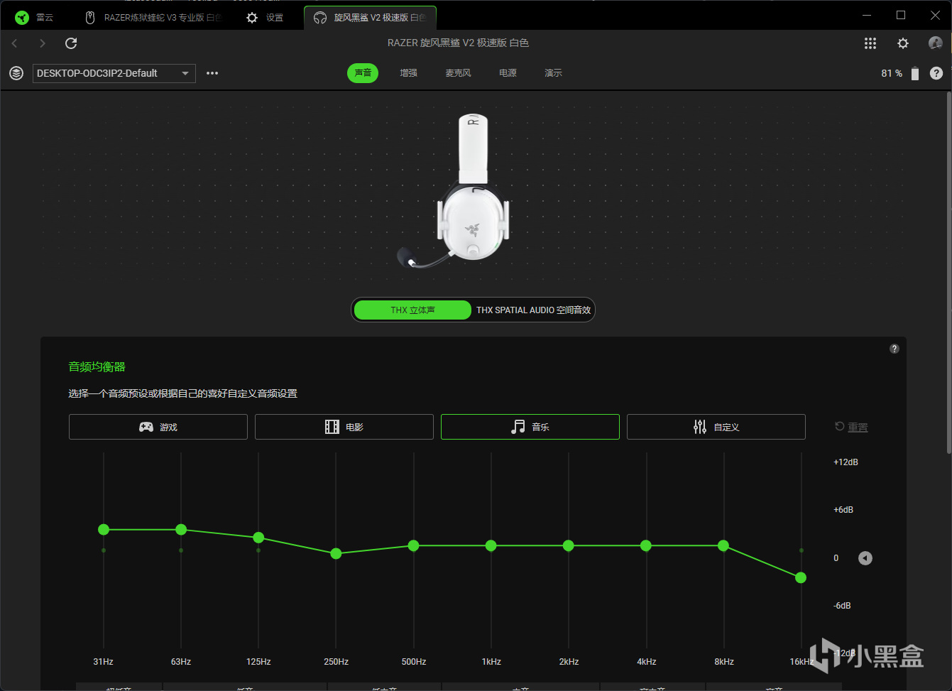 如果玩的是FPS遊戲,非常建議在雷雲內打開THX空間音效,聽聲辨位必備!THX空間音效在驅動內有相關的演示,和常規的立體聲真的是一耳朵的不一樣。