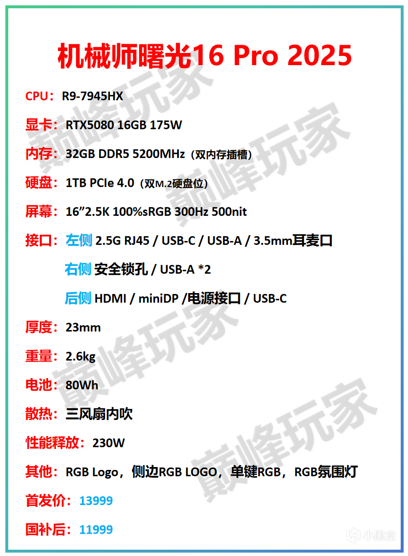 比如单键RGB,提供情绪价值的氛围灯,最新一代的旗舰CPU,也没有雷电5,甚至都没雷电4,性能释放不够顶(比如达到250W甚至270W以上),散热、外观、壳料、屏幕等也都距离顶级旗舰有差异,