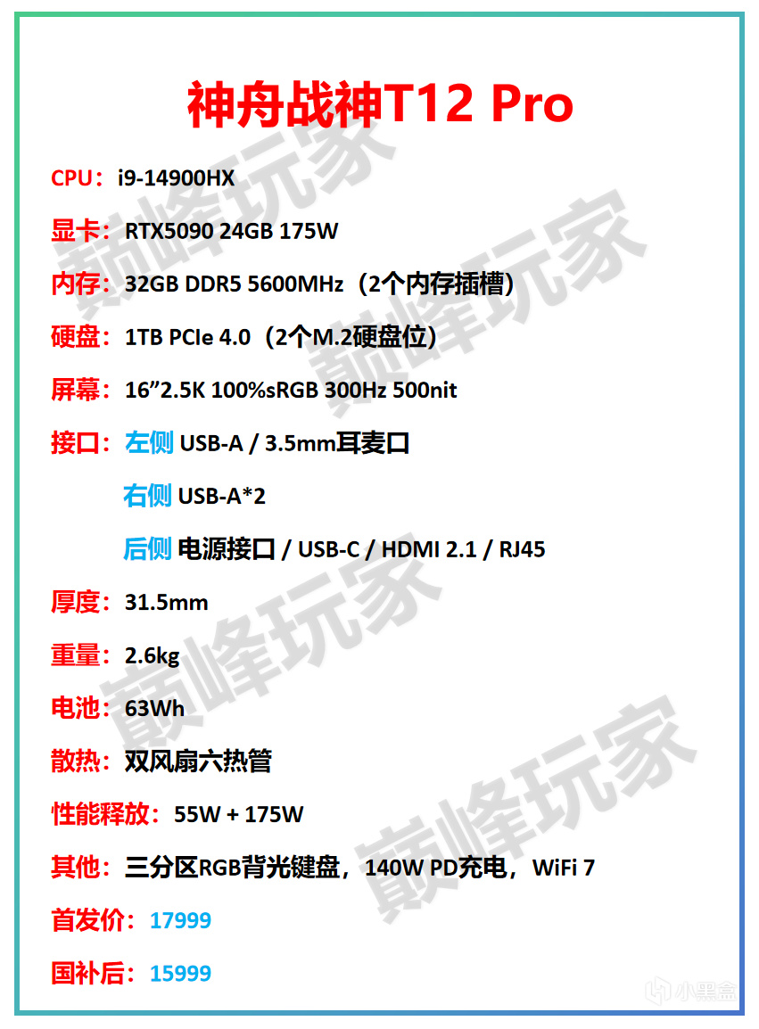 就战神T12 Pro这价格来看,比目前最便宜的RTX5080游戏本,同配置贵了4000,可以说贵的部分几乎就是显卡(含显存)的差价了。这价格,显卡(含显存)占了可能有60%的整机成本,说ta是买显卡送笔记本,也挺合理。