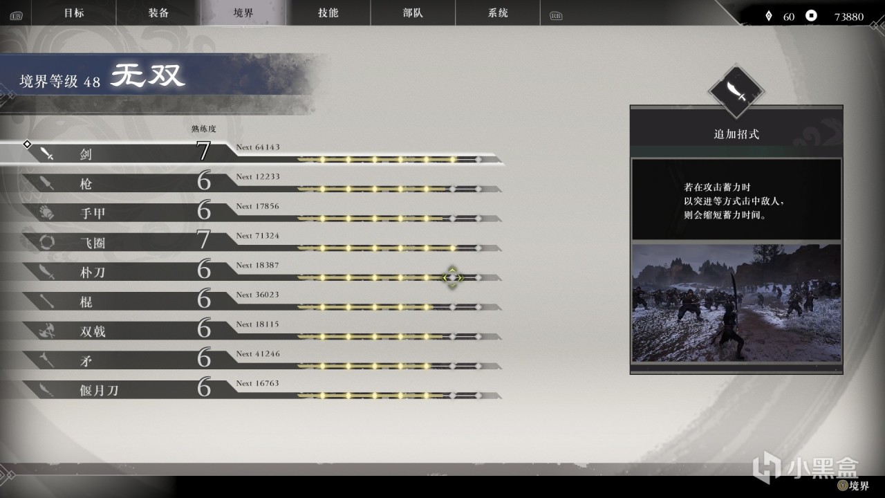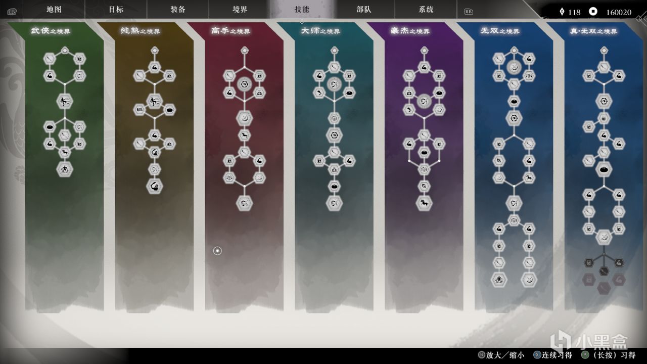 为了鼓励玩家使用不同的武器,本作将角色成长与武器熟练度挂钩,单一武器熟练度每升一级,角色等级也随之提升一级。,升到一定等级,会解锁面板,玩家可以通过战功进行加点,而战功则是通过战场表现和完成武将任务来获取的。