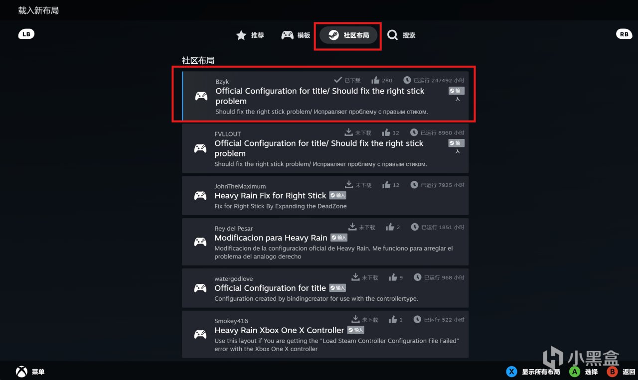 再点击【社区布局】,点击下载第一个布局,也就是【Official Configuration for title/Should fix the right stick problem】。