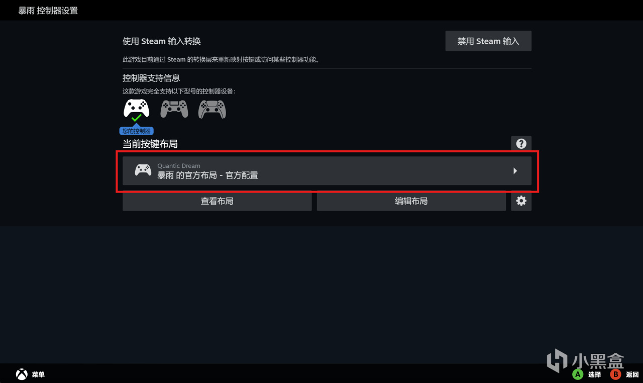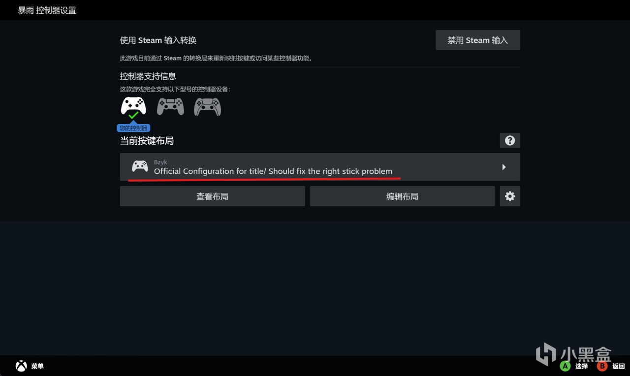 然后回到控制器布局界面,可以看到“当前按键布局”已经改为下载的社区布局。