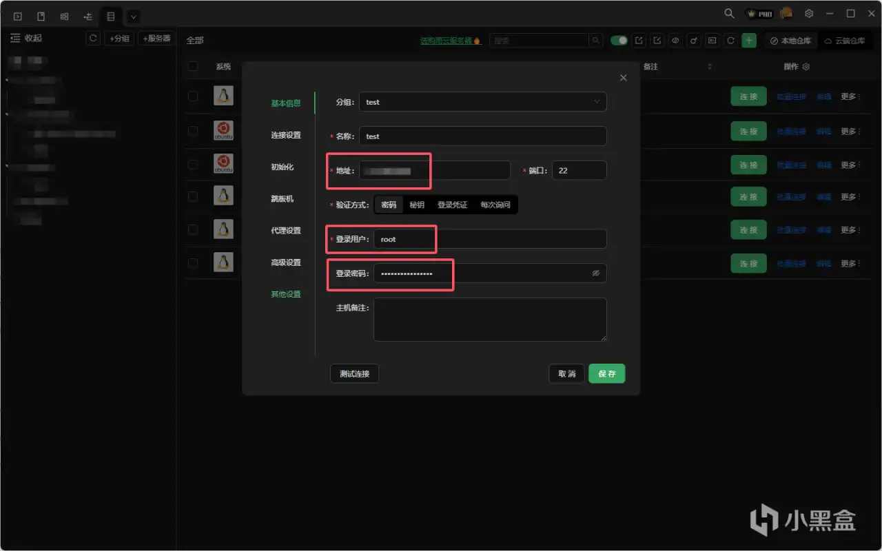 打开Xterminal并新建一个服务器,在地址、登陆用户、登录密码中分别填入你之前记下的公网IP地址、远程用户名、远程密码,并保存。随后回到Xterminal主界面点击”连接”就顺利进入服务器内部了