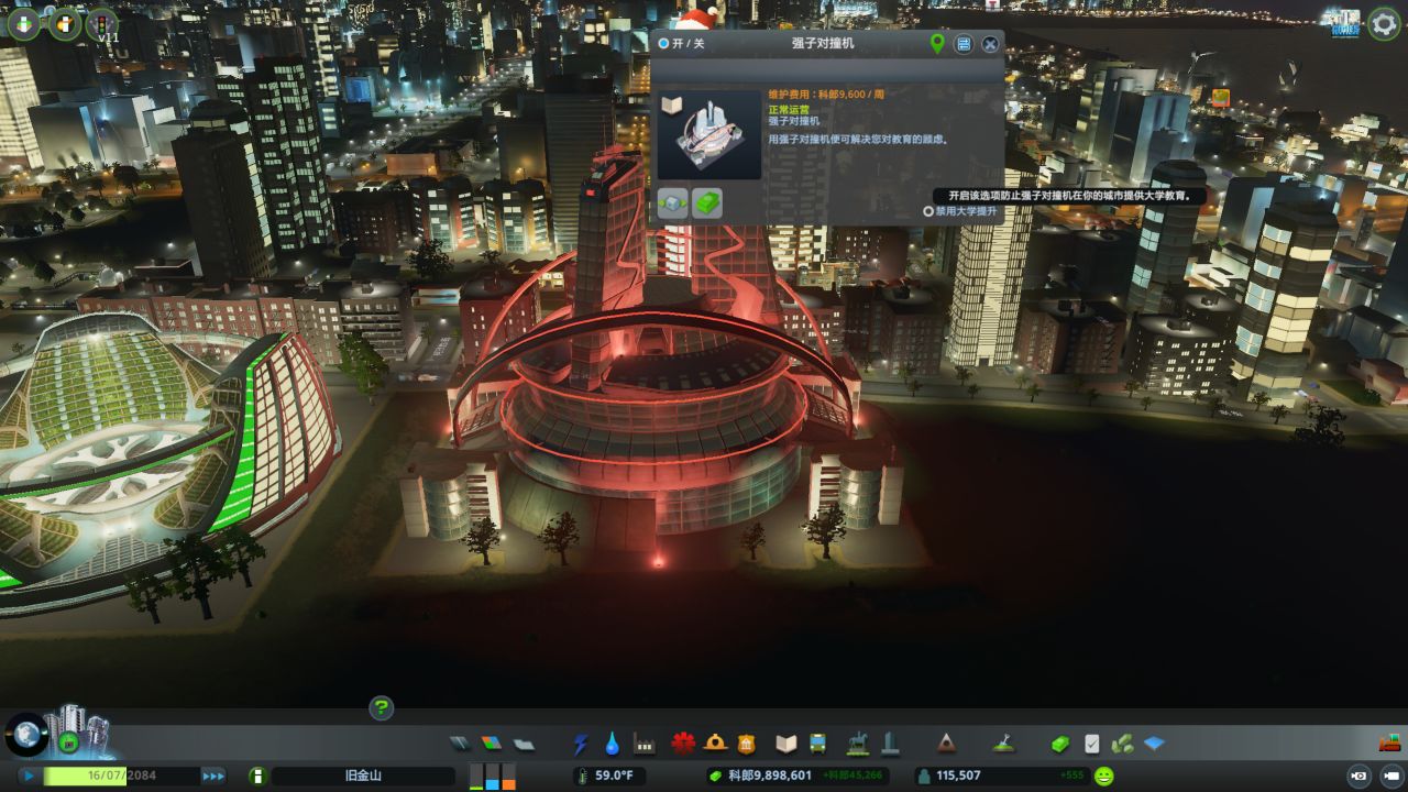 作用相当于一个超级学校,为全图的居民提供各阶段教育,居民会光速毕业提升学历(这里需要说明一下,住宅区等级和居民受教程度有关,因此建设强子对撞机后,住宅区也会大片快速升级)