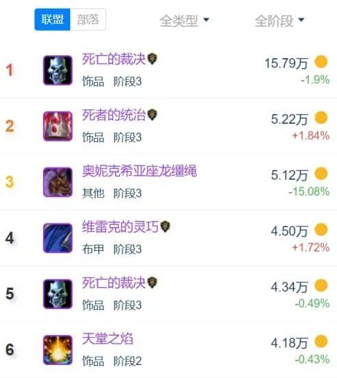 与此同时,类似“死亡裁决”和“亡者统治”等极品装备,或许难以达到亚服的顶级价位,可依然是许多老板所追求的配装刚需。