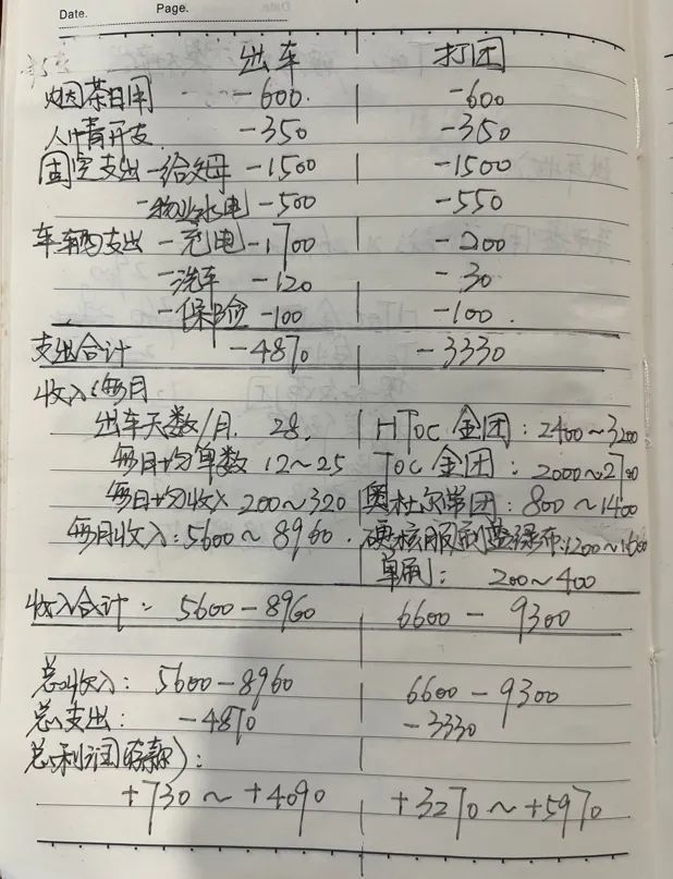 按照牢沙的说法,他每天差不多出车12个小时,刨去杂七杂八的用车维护、充电成本,以及在外就餐,在差不多10个月的“司机生涯”里实际到手差不多3万多块钱,平均每个月挣3500块钱左右,运气差点的月份还试过2000块钱不到的触底。