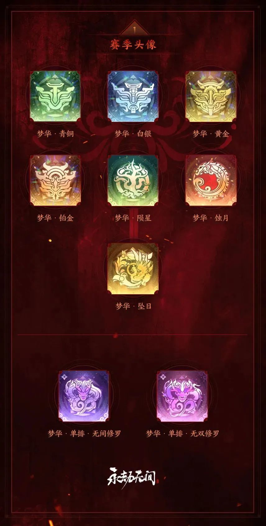 無間修羅、無雙修羅段位社交頭像獎勵區分單排、雙排、三排,且不同模式可重複獲得。