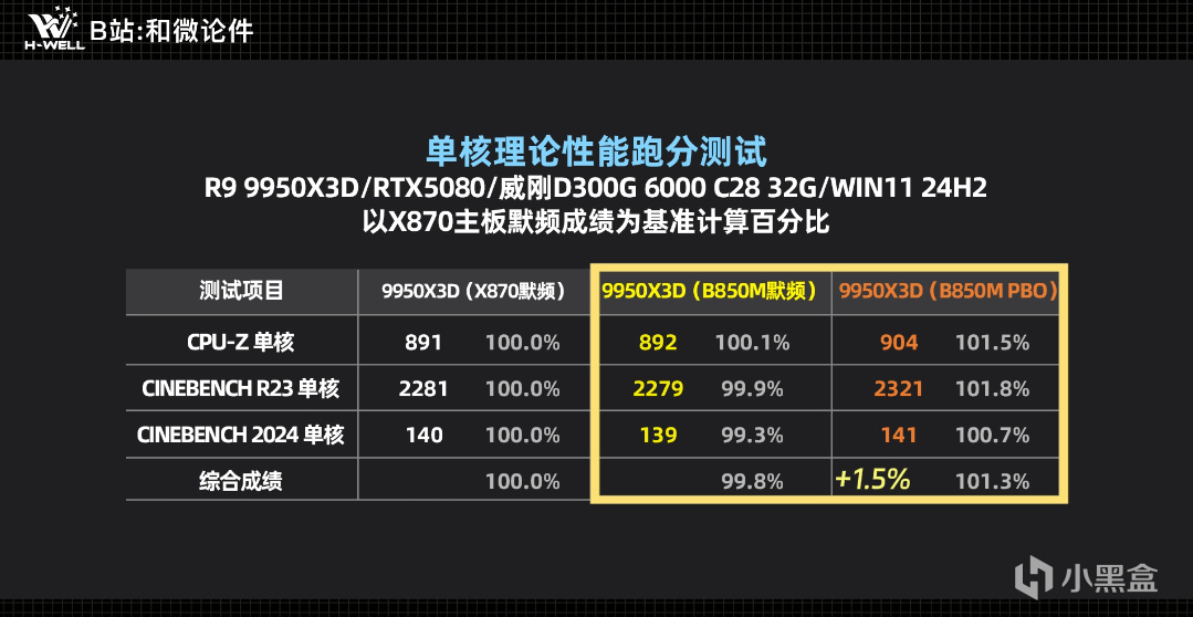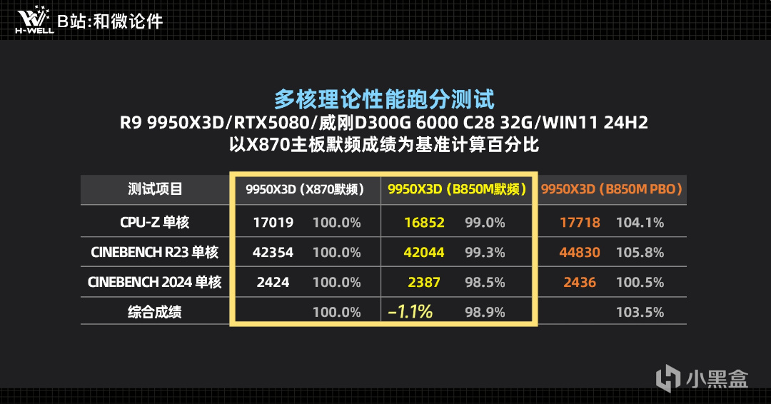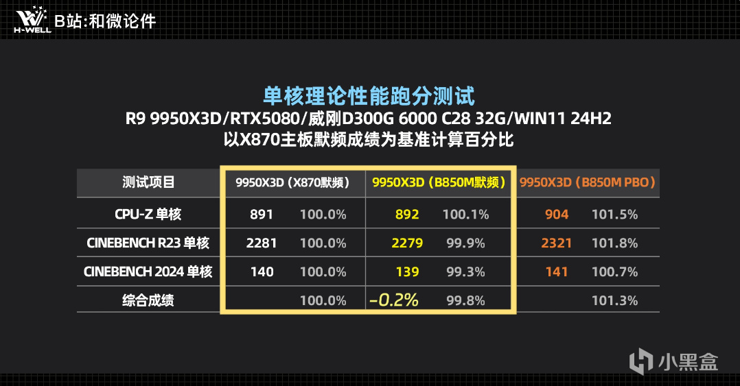 0.2%的差距基本可以理解爲測試誤差,B850M開啓PBO之後提升幅度也有限