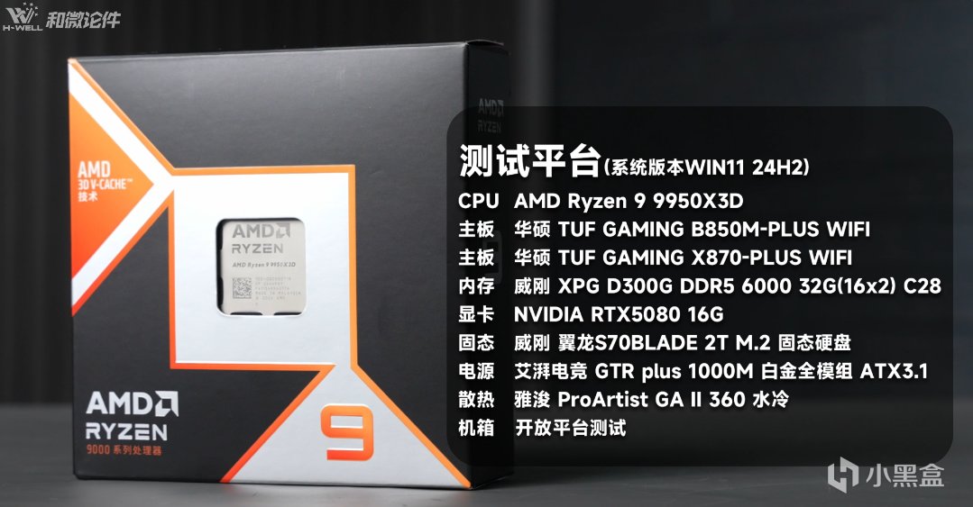 接下來看下今天的測試項目,測試平臺如圖,我們拿來目前AMD遊戲和生產力雙料旗艦型號R9 9950X3D,測試下在TUF B850M-PLUS WIFI這款主板上的性能表現,包括默頻和PBO模式下的測試成績