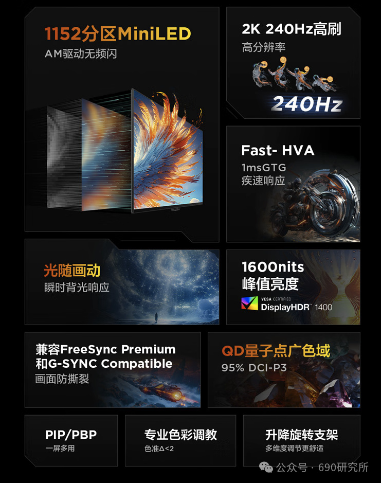 有的遊戲黨可能擔心面板的響應速度,Q6上採用的是華星光電的Fast HVA面板,這塊面板用在很多旗艦MiniLED顯示器上,在Q6上也能做到1ms 的GTG響應速度,我覺得如果不是那種專業玩家,其實也很難感受出來區別的。