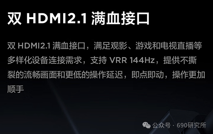 前面咱們說過了,鵬系列雷鳥給它的定位是高性能大屏遊戲電視,所以在整體的配置上主打滿血接口,MiniLED當然是無緣了,但超高刷倒是給安排上了。