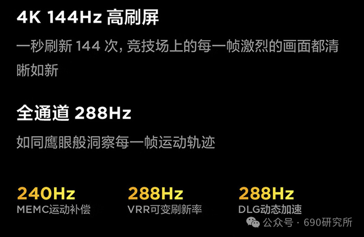 遊戲電視除了滿血接口之外,還支持到了超高的運動補償和超高的VRR可變刷新率以及超高的DLG動態加速刷新率。像這裏的鵬7 25款就支持240Hz的MEMC運動補償,288Hz的VRR可變刷新率以及288Hz的DLG動態加速刷新率。