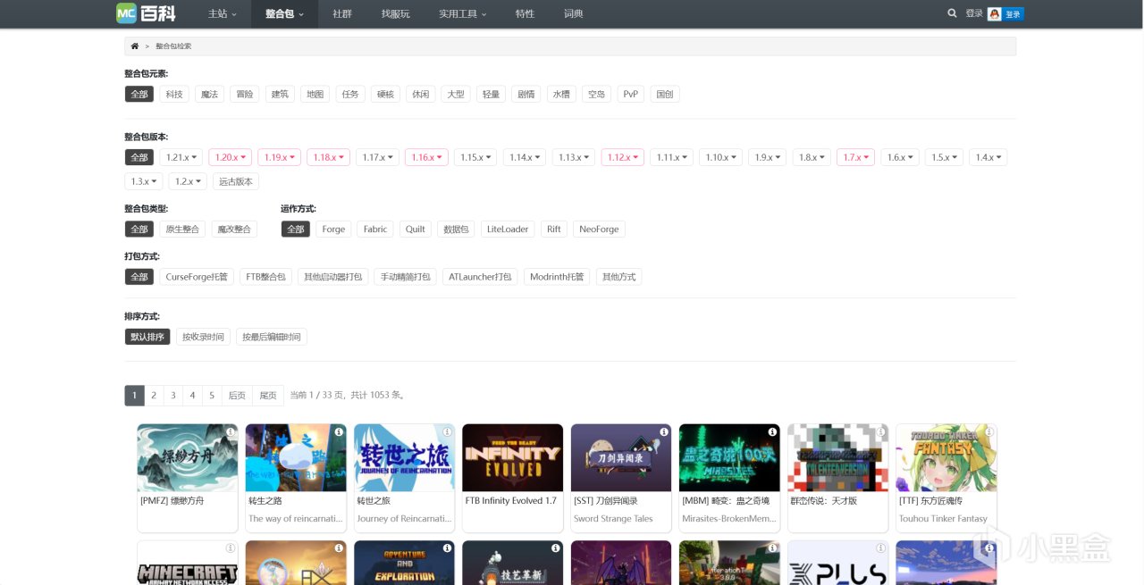 ▍網址:mcmod百科(整合包下載界面)