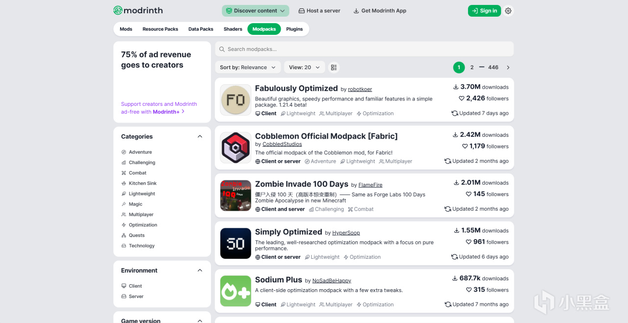 ▍網址:Modrinth(整合包下載界面)