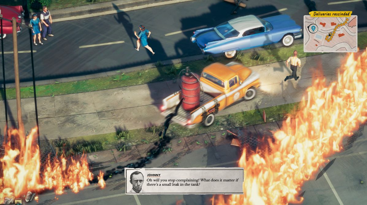1959 年,一个由摇滚乐、波点裙、以及被核毁灭的恐惧所笼罩而组成的时代。你将成为一名穷途落魄的快递员:温斯顿·格林,他脾气暴躁,还拥有神秘的过去。他递送着超乎常理、千奇百怪的货物,哪怕中途横冲直撞,身后满地狼藉,一切只为做到《绝递必达》!
