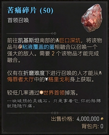 同時,擊敗格里戈利也可以獲得苦痛碎片(都瑞爾的召喚物之一)