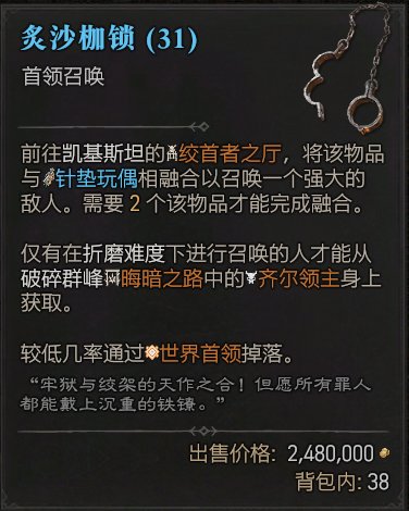 擊殺齊爾領主的同時,我們也可以獲得炙沙枷鎖(安達利爾召喚物之一)