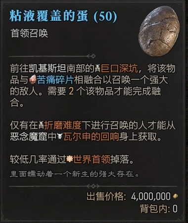 通過消耗兩個粘液覆蓋的蛋和兩個痛苦碎片進行召喚