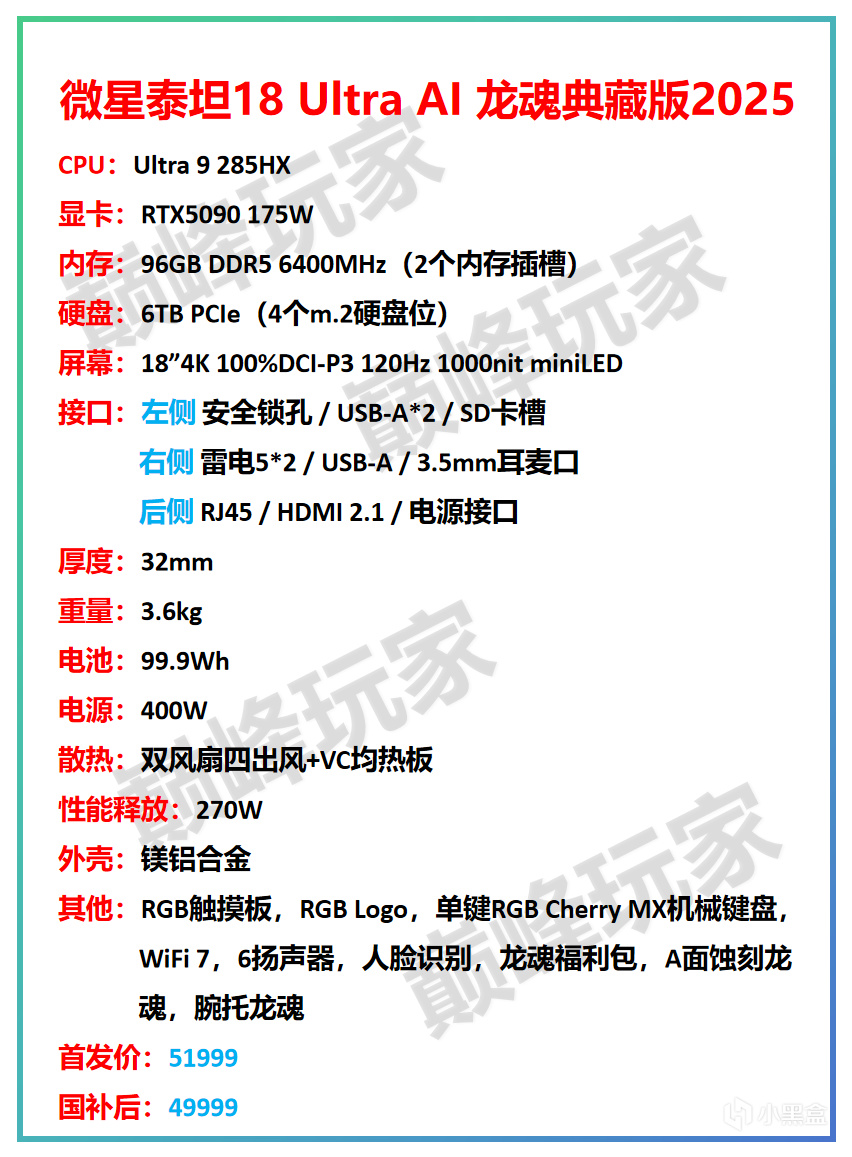 當然,泰坦18 Ultra除了有龍魂典藏版外,也有普通版(微星泰坦18 Ultra AI 2025),