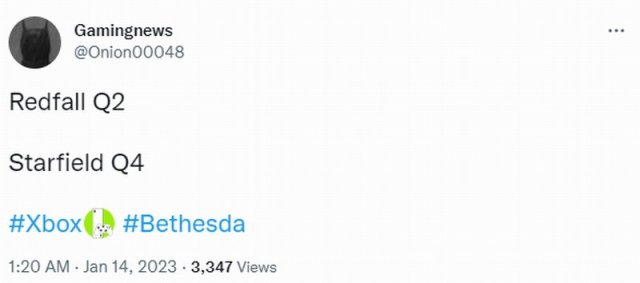 1月14日,有一位業內人士Onion00048發推文稱,《星空》現在的目標是2023年第四季度發售,而《紅霞島》仍按計劃於2023年第二季度在PC和Xbox平臺推出,這將意味着《星空》將於今年10-12月之間推出了: