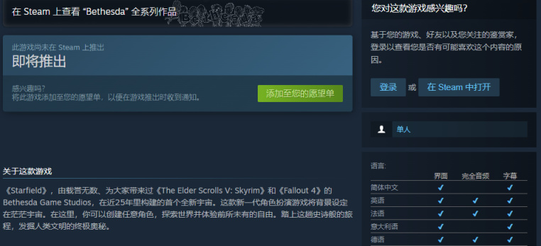 1月13日晚,Bethesda Game Studios 的開放世界RPG大作《星空》的 Steam 頁面將發售日期從2023年改爲了即將推出(Steam平臺新規則),雖然此前Xbox曾宣佈過將於1月26日舉辦開發者直面會,但是《星空》這款遊戲並不包含在內: