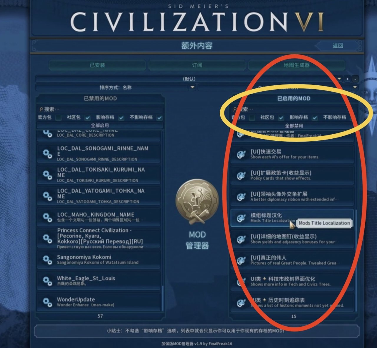 可以下载mod管理器,看看mod会不会影响种子(模组标题简中化+enhanced mod manager,如上图)