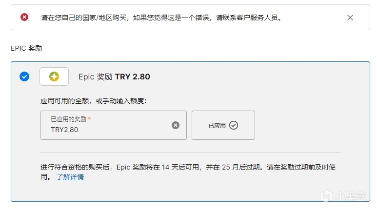 這時候就需要再次用到小黑盒加速器了,如果加速器有問題或者沒有開,支付時候會提示錯誤。