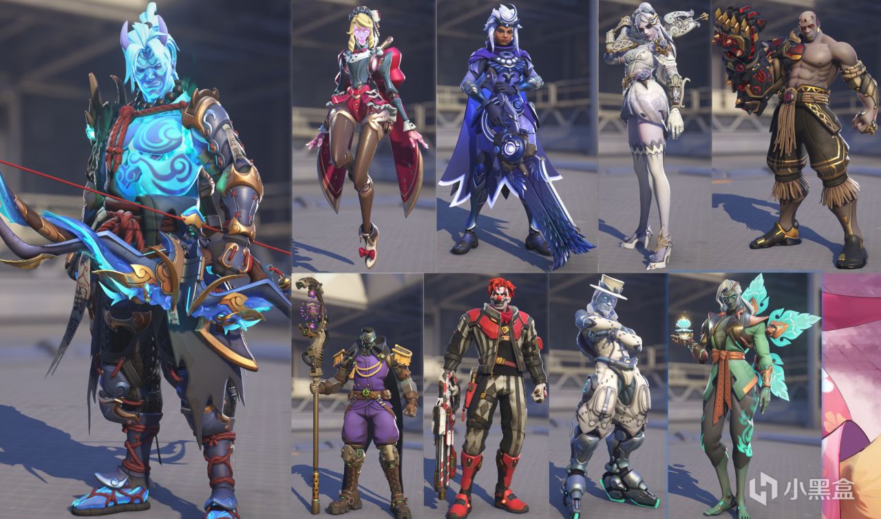 S5 西式奇幻:冒險者——獵空,狡黠盜賊——霧子,鍊金術士——小美,皇家衛士——源氏,極地——安娜,史萊姆女王——回聲,皇家占星師——禪雅塔,蜂巢球——破壞球,馭天獅鷲——奧麗莎,惡魔領主——萊因哈特