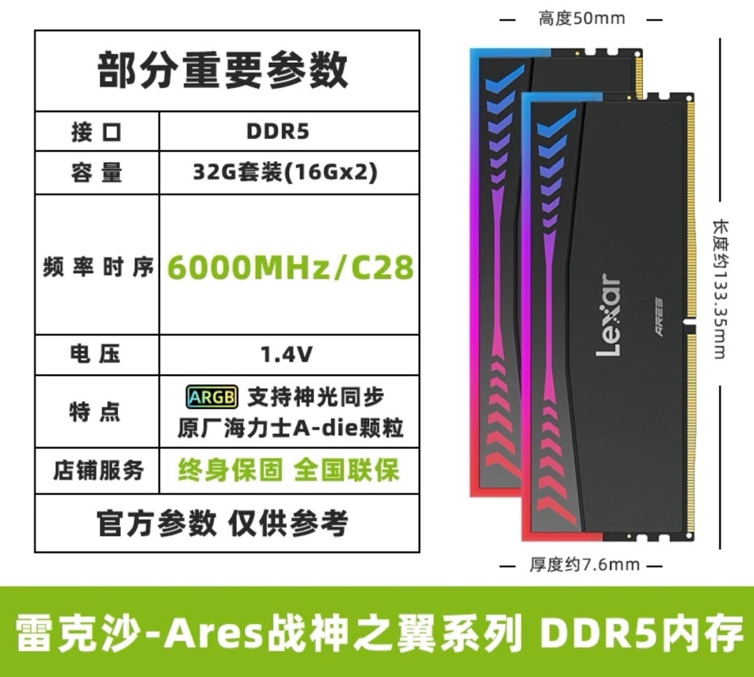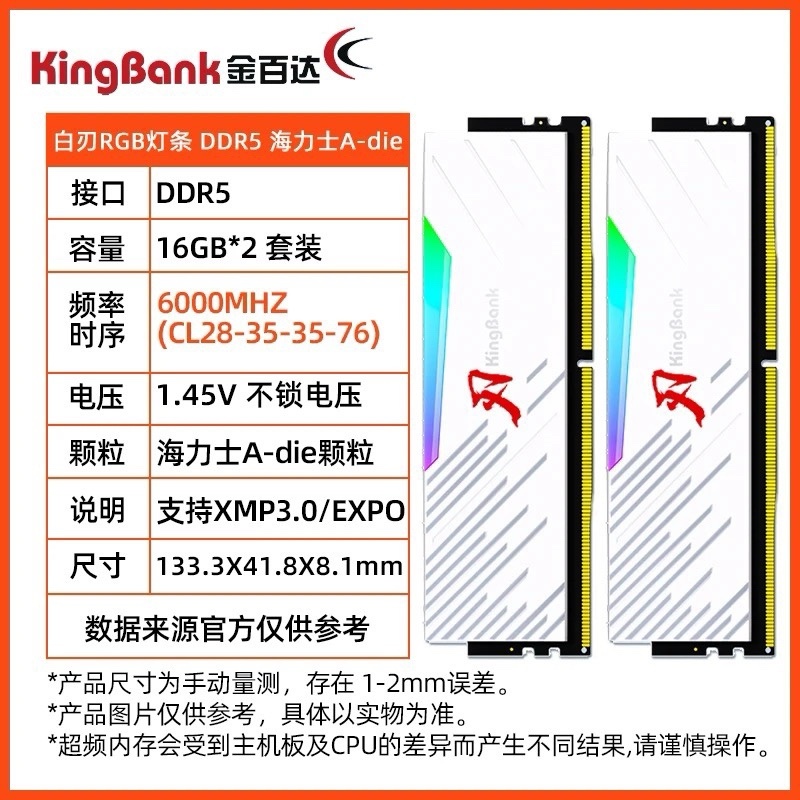 金邦曾經也是存儲界的一線品牌,現在注意力基本傾向固態了。ddr5只有巨蟹一個系列,分燈條和馬甲條,要注意顆粒類型,ddr5的各種顆粒都用,優先選擇a-die,大容量選擇m-die。有白色和黑色。