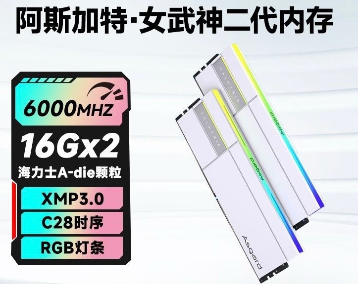 阿斯加特推薦買女武神二代、博拉琪、雷神索爾。女武神2代,有白色和黑色,也是很好一款內存,ddr4選擇他家的tuf聯名也是不錯就是沒有燈,ddr5的tuf還是個燈條。