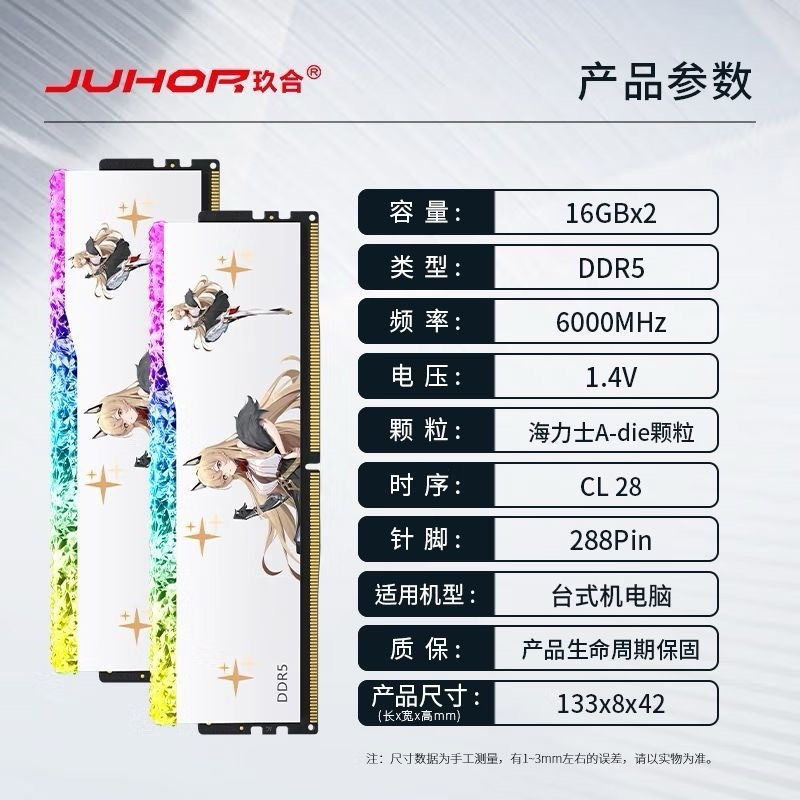玖合這個品牌比較新,但內存條沒有技術壁壘,只要代工廠強品質就會好。之前調過ddr4的體質很好,就是兼容性很差,不建議搭配二線及以下品牌的主板。玖合玲瓏有黑色和白色,燈條、馬甲條。購買時注意時序、頻率。
