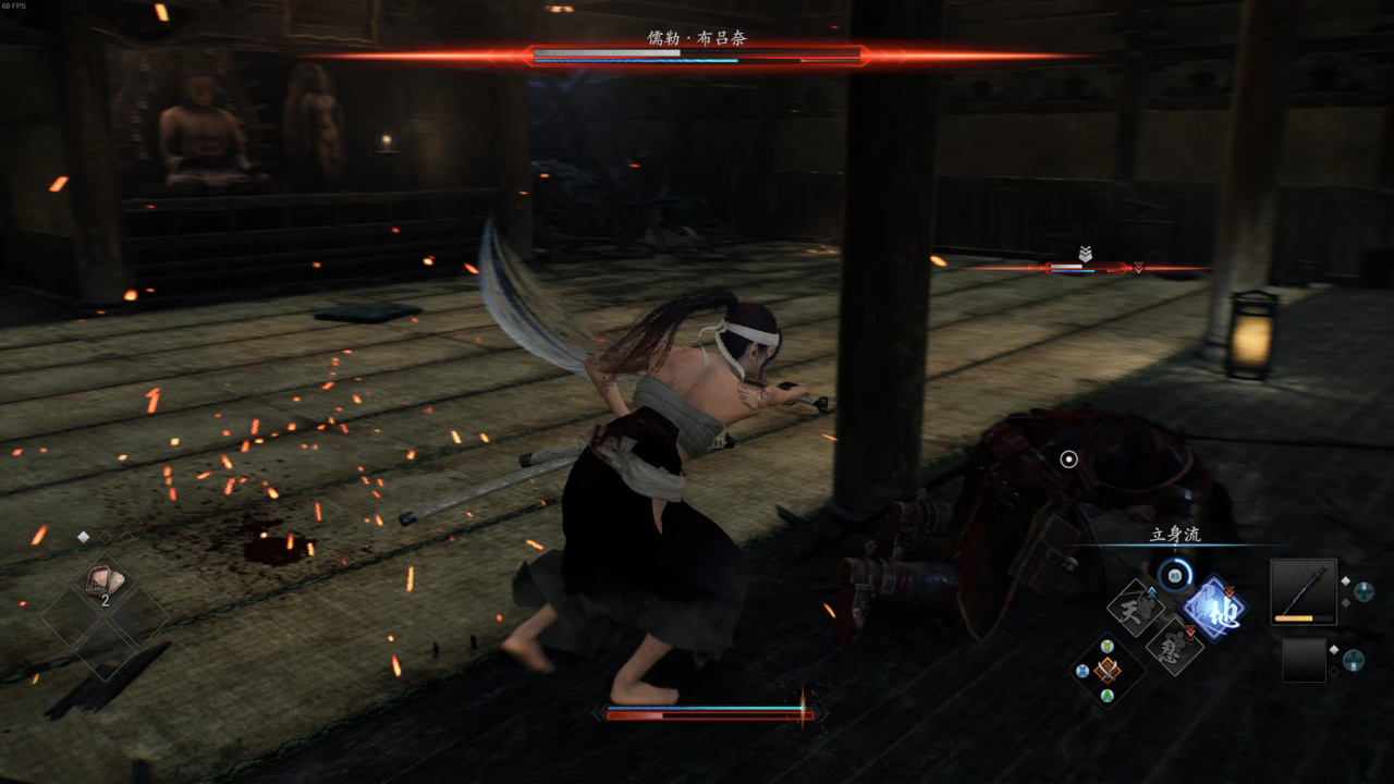 由上文可以直观得出的一个结论是,具体到回复精力的操作上,浪人只有石火和闪刃可以做到,且在闪刃的释放上添加了诸多限制。归根结底,这是忍组想要把玩家导向回精的另一操作,也是本作战斗的核心——石火上。