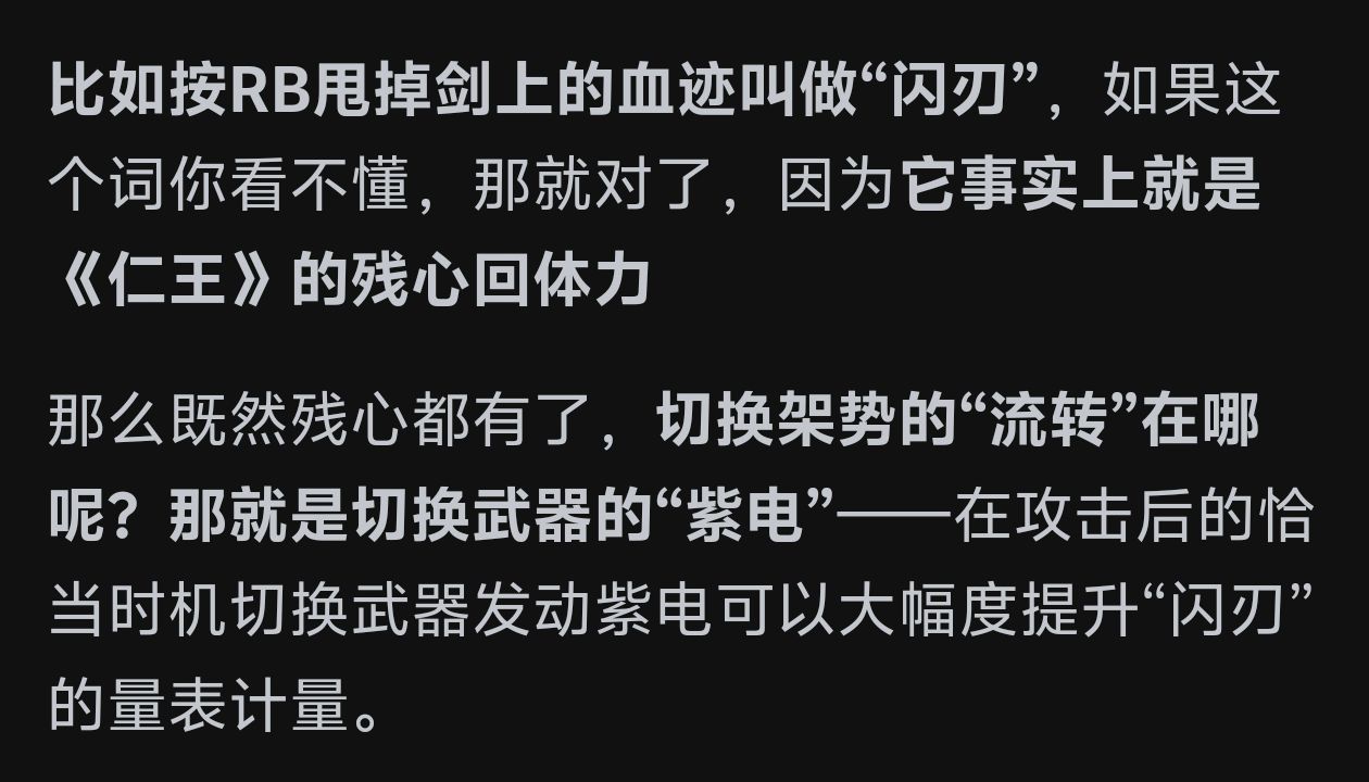 我的观点是,能够发挥玩家的主观能动性,给足玩家交互的选择项而不是处处限制玩家,同时能够对玩家的操作提供充分正反馈的设计是好的设计。而这几点只是在仁王2中恰好表现为对人战术中的压制罢了。