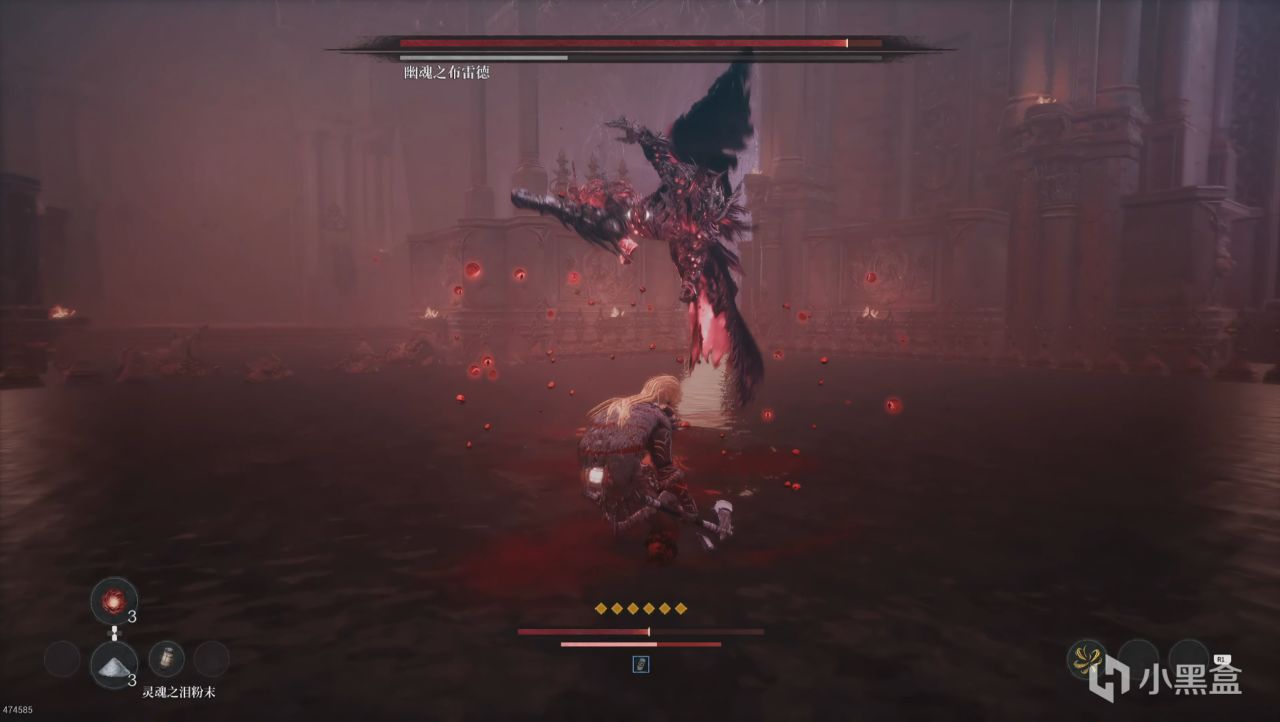 再說第二個boss幽鬼。體型是人形的boss,我最喜歡的體型。造型設計也還算不錯,動作打起來很有隻狼boss的感覺。尤其三連踹讓我想起來了孤影衆。這個boss也是試玩版最後的boss。整體打下來我也打了半個小時,本想用一些花裏胡哨的打法錄視頻。結果被他虐了半天,最後迴歸常人老老實實彈刀等硬直處決才過的。整體打完很有類魂boss那味,boss的動作也比較豐富,交互感也很足。就是這個boss經常拔劍開連招,然後就把自己體力槽打沒,跪在我面前讓我處決。像極了我們自己在玩類魂遊戲的樣子。