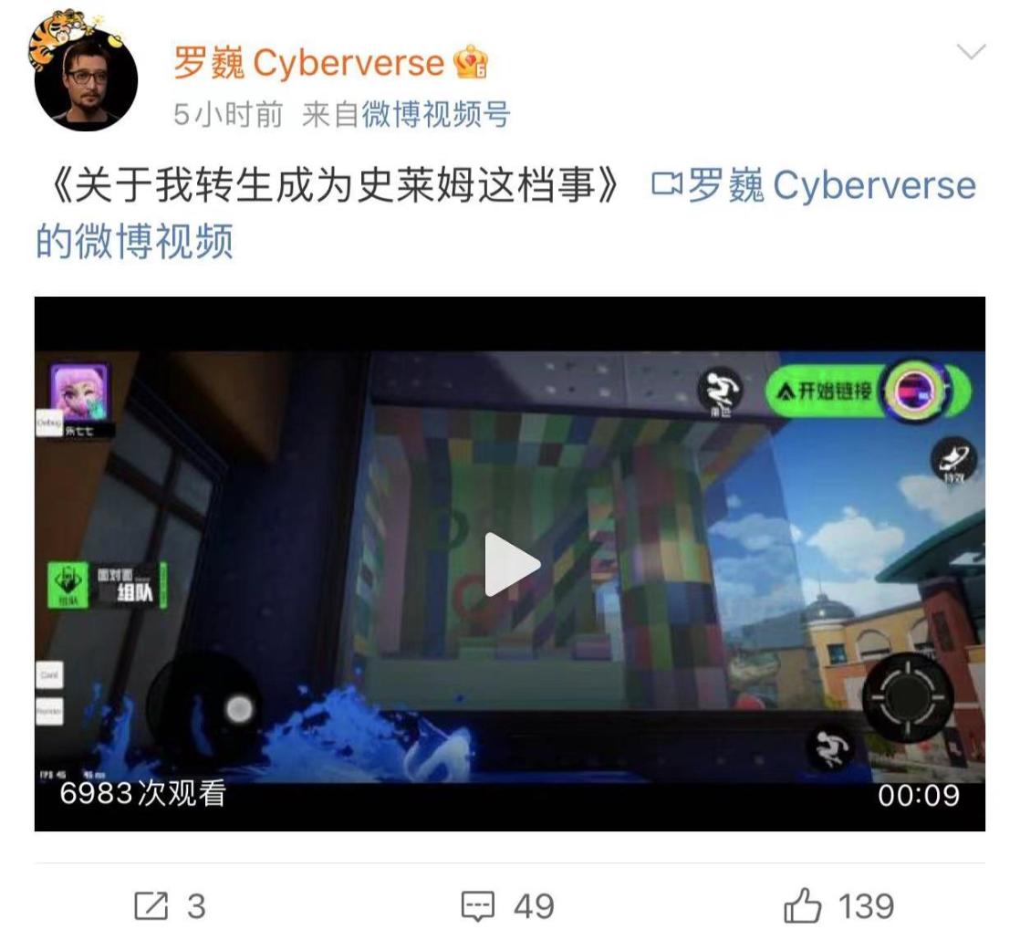 而其首席科學家,總工程師羅巍在他自己的官方賬號@羅巍Cyberverse,在近日分享了一款開發中的國產手遊試玩DEMO,可以說完全和任天堂的《斯普拉遁》一模一樣。