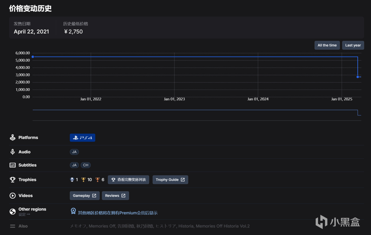 價格曲線 音頻 字幕 及獎盃情況都有列出