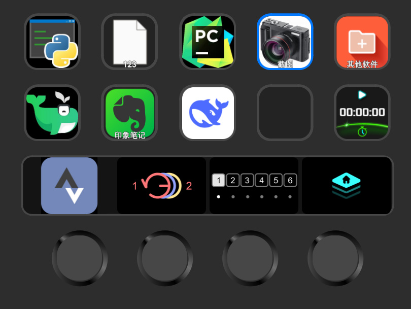 身爲一名愛學習的人,當然要將這款外設用於學習啦doge,在場景的第一頁,我將文獻、筆記、編程等軟件放到了一起,此外我喜歡在裏面放個計時器的插件,用於查看學習了多久。同時建議你從選擇打開應用選擇程序,這樣即使被其他應用覆蓋,再次按下也能也能將其他應用覆蓋下去,當然也可以直接拖動想要的軟件進入框中,並選擇打開/顯示可以達到差不多的效果。下方的按旋鈕除了切換頁面和場景外,我還設置了上下翻頁,以及界面切換,這裏的切換我使用Ctrl + Alt + Tab,而左轉設爲了回車,這樣就可以慢慢挑選自己需要的頁面了。