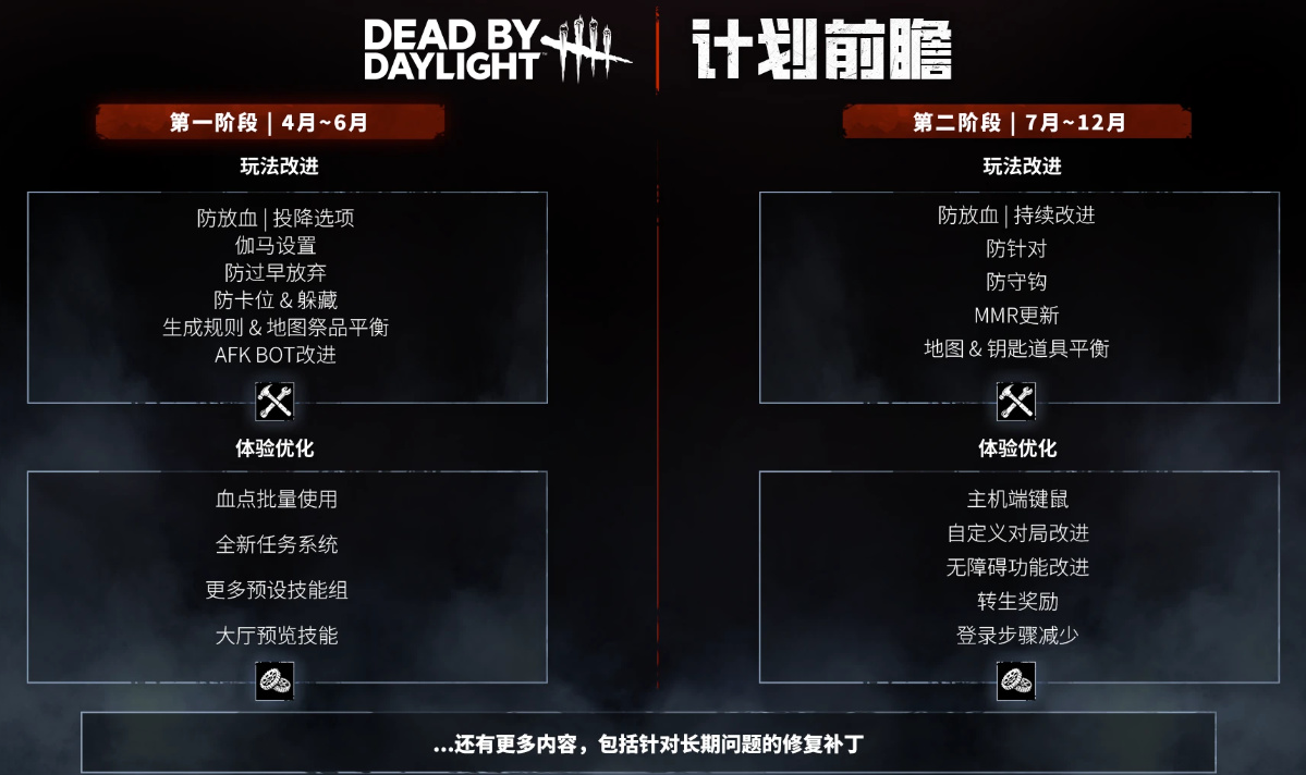 而且即便你制作组希望玩家参与一起讨论给出一个更合理的方案,你也从一开始都没想好好做,最起码的数据都不给玩家看:参与重做的地图、技能、杀手近几个版本的所有统计数据、重做后的数据表现,你都不愿意让想帮上忙的玩家从合理的角度出发去做改动提案,纯粹感觉就是临时兴起给自己找点事做,与其这样,你不如放弃那些有的没的的返工,从最根本的地图、杀手数据来考虑一下那些真正弱势且放了很久的角色上动刀,毕竟那些杀手,还有人在玩,也有人就喜欢玩。