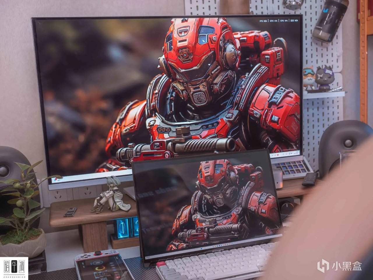 ▼多放幾張圖,正好可以和後面的主顯示器做個對比,顯示器型號是微星mpg321urxw ,兩者均爲三星 OLED 面板,區別在於顯示器亮度更高,而且 CFORCE 116T 是全貼合屏,拍照容易反光,所以相機拍出來的效果沒那麼鮮豔,不過實際體驗兩者區別並不大。