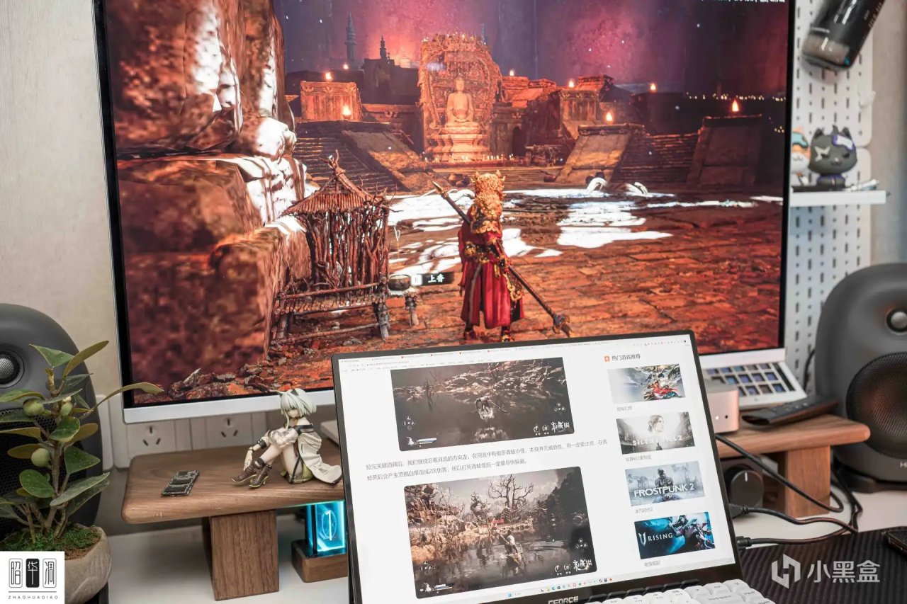 ▼便攜屏的另 一 個實用場景就是充當攻略查詢窗口,拿黑神話來舉例,相信沒幾個朋友能在不看攻略的情況下達成隱藏劇情全通關,現在可以邊玩邊看攻略要點,相比單機切換畫面,不僅效率更高,而且沒有遊戲彈出的風險。