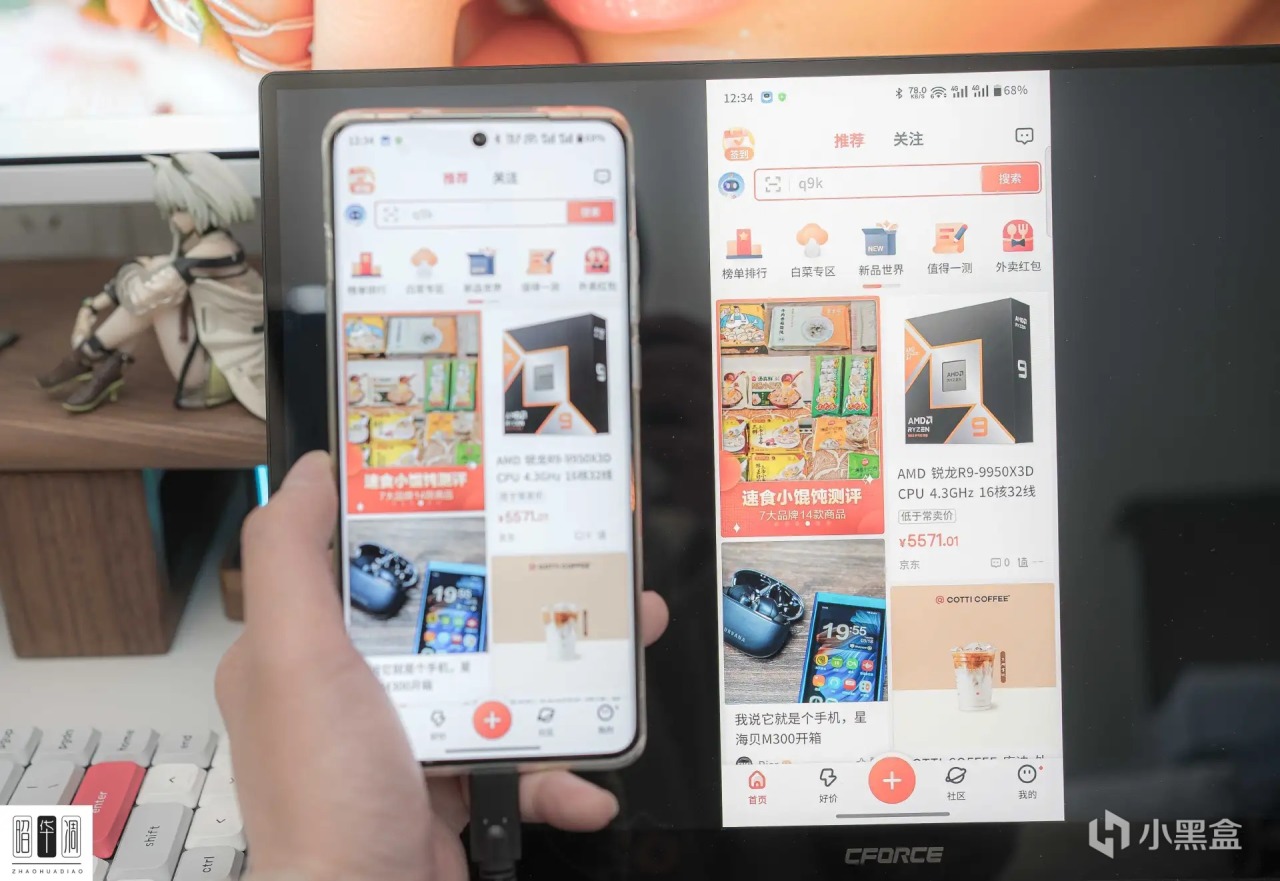 ▼搭配筆記本作爲副屏使用,既能爲圖像編輯提供更大的操作檯,也能作爲雙屏辦公提升工作效率,一 條連接線就能完成便攜屏的圖像傳輸 / 供電,方便性還是挺高的。