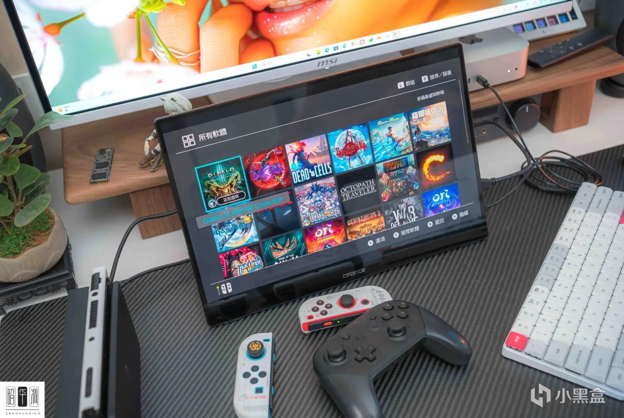 ▼這塊屏幕在連接 Switch 時堪稱 buff 疊滿,優秀的面板素質,能將 Switch 的卡通渲染風格推向極致。而且相較於 Switch 本體 7英寸 屏幕的侷促視野,這塊 16:10 的“巨幕”,能讓玩家在掌機端也能感受到沉浸感爆棚的遊戲體驗。