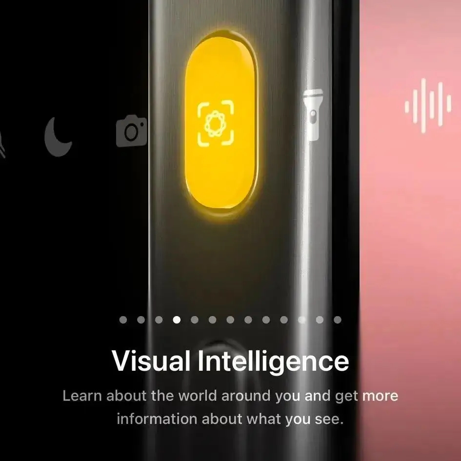 在之前版本,蘋果視覺智能功能只能支持 iPhone 16 系列機型,而在此版本中,已經支持了 iPhone 15 Pro 系列使用,用多功能靜音按鍵即可觸發。