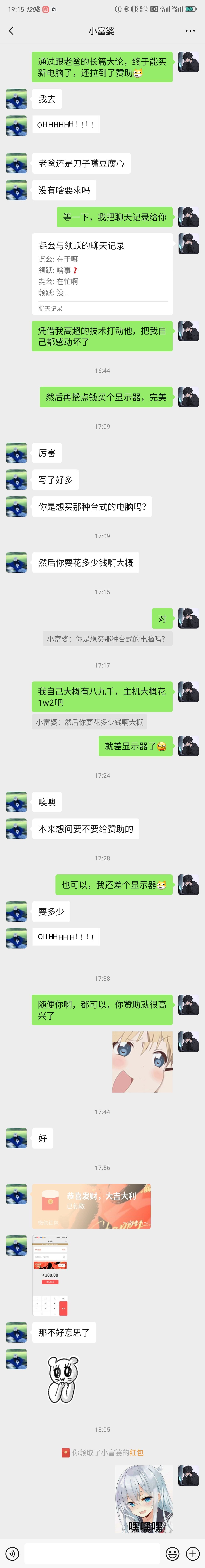 買了筆記本之後,lz這一年多以來真的是太痛苦,很多遊戲都玩不了,就一直想換個電腦,去年lz妹妹高考結束步入大一,雙11的時候她也要買電腦了,就想着以舊換新把現在這臺換了(lz這一年以來寒暑假通過和老爸幹活還有實習,攢了一些錢),其實lz也想過把這臺給妹妹,畢竟她也不玩遊戲,但是lz一想啊,每個人肯定都希望能擁有一臺新的電腦啊,把舊的給妹妹對她不公平,就放棄了(我感覺我如果跟妹妹說了這個想法她真的會同意),等妹妹買完之後和老爸說了換電腦的想法,但是沒有同意,就放棄了(圖2)。