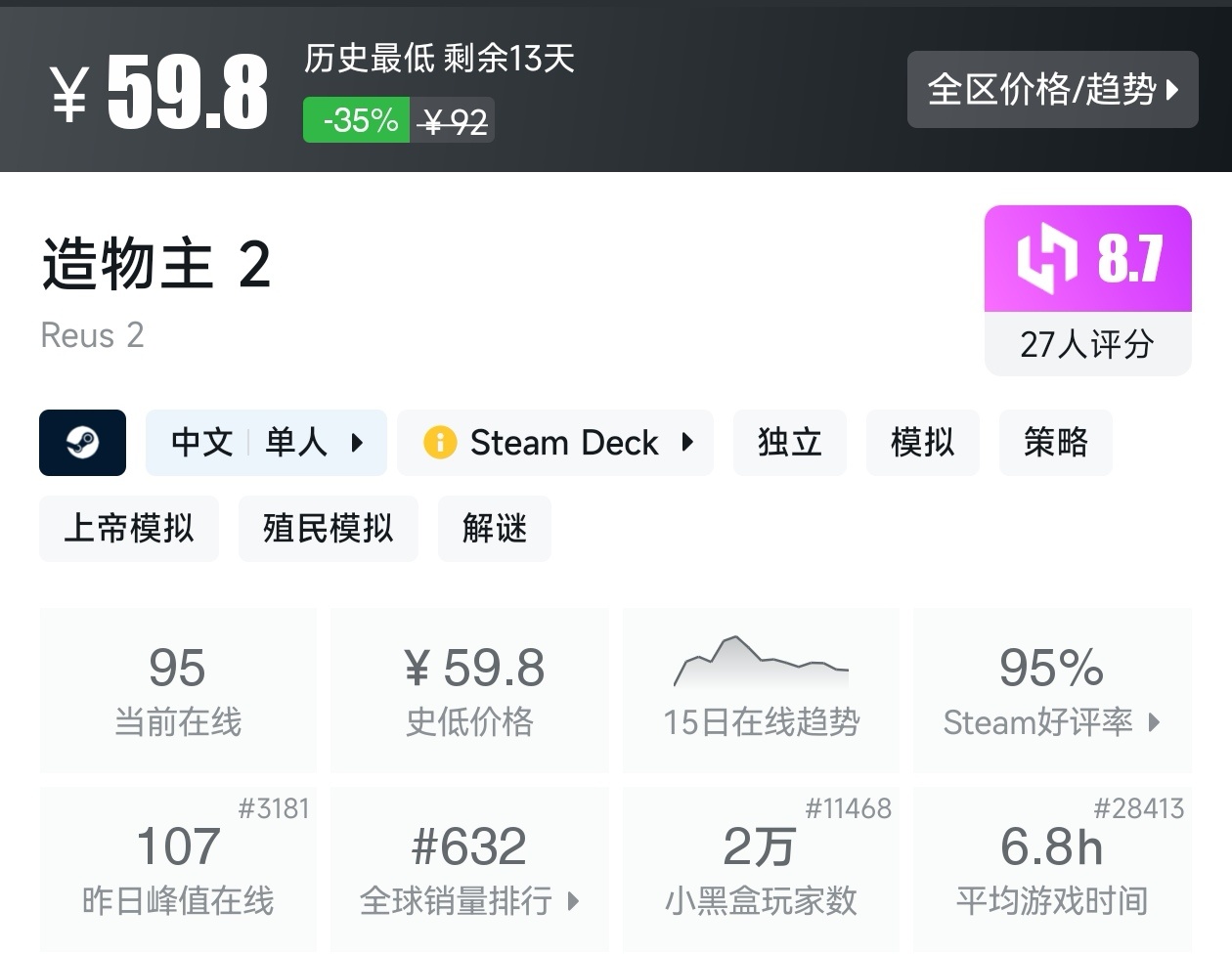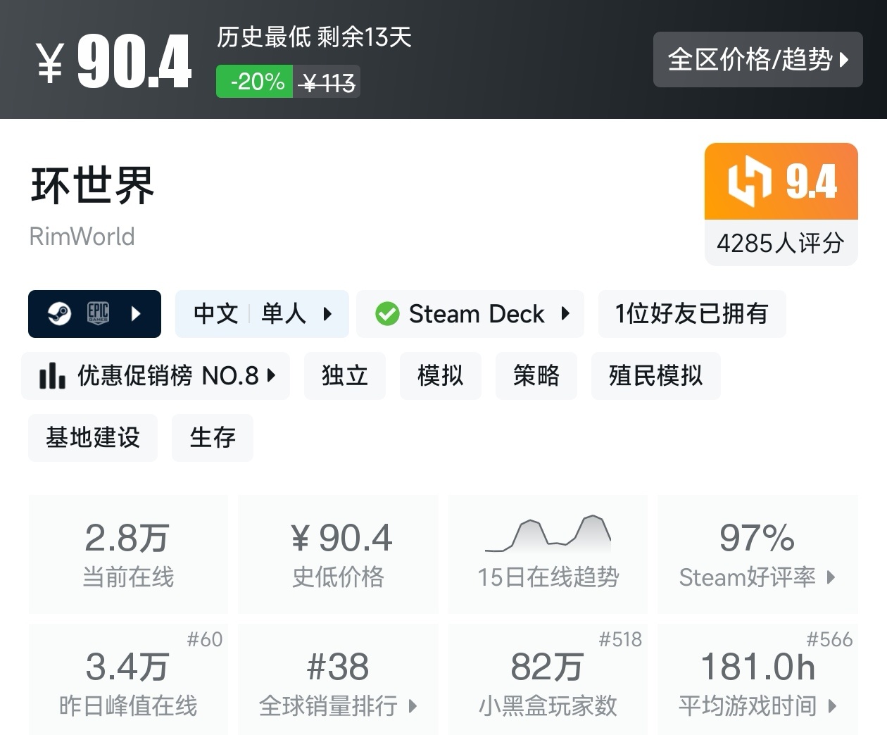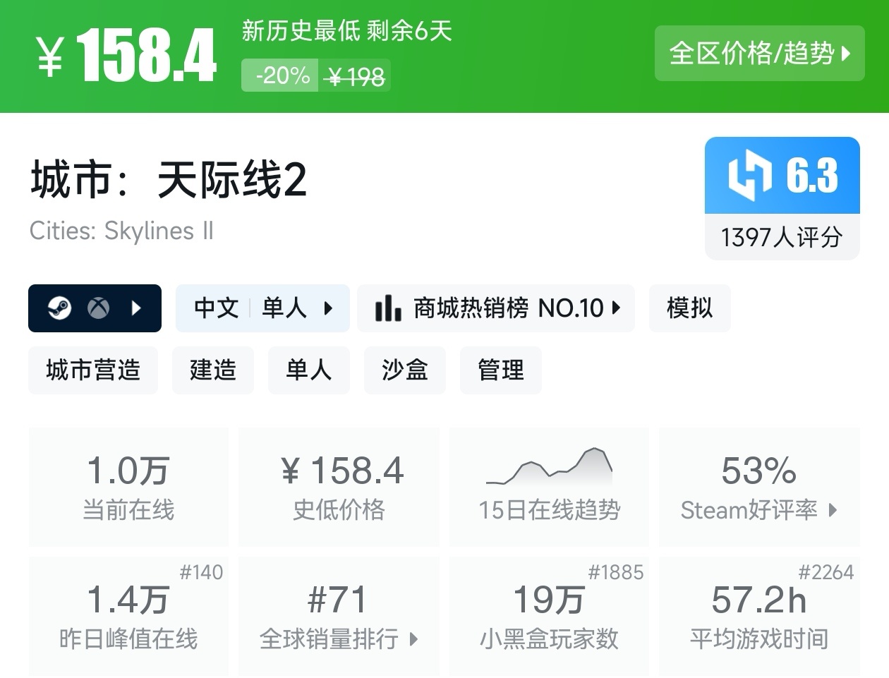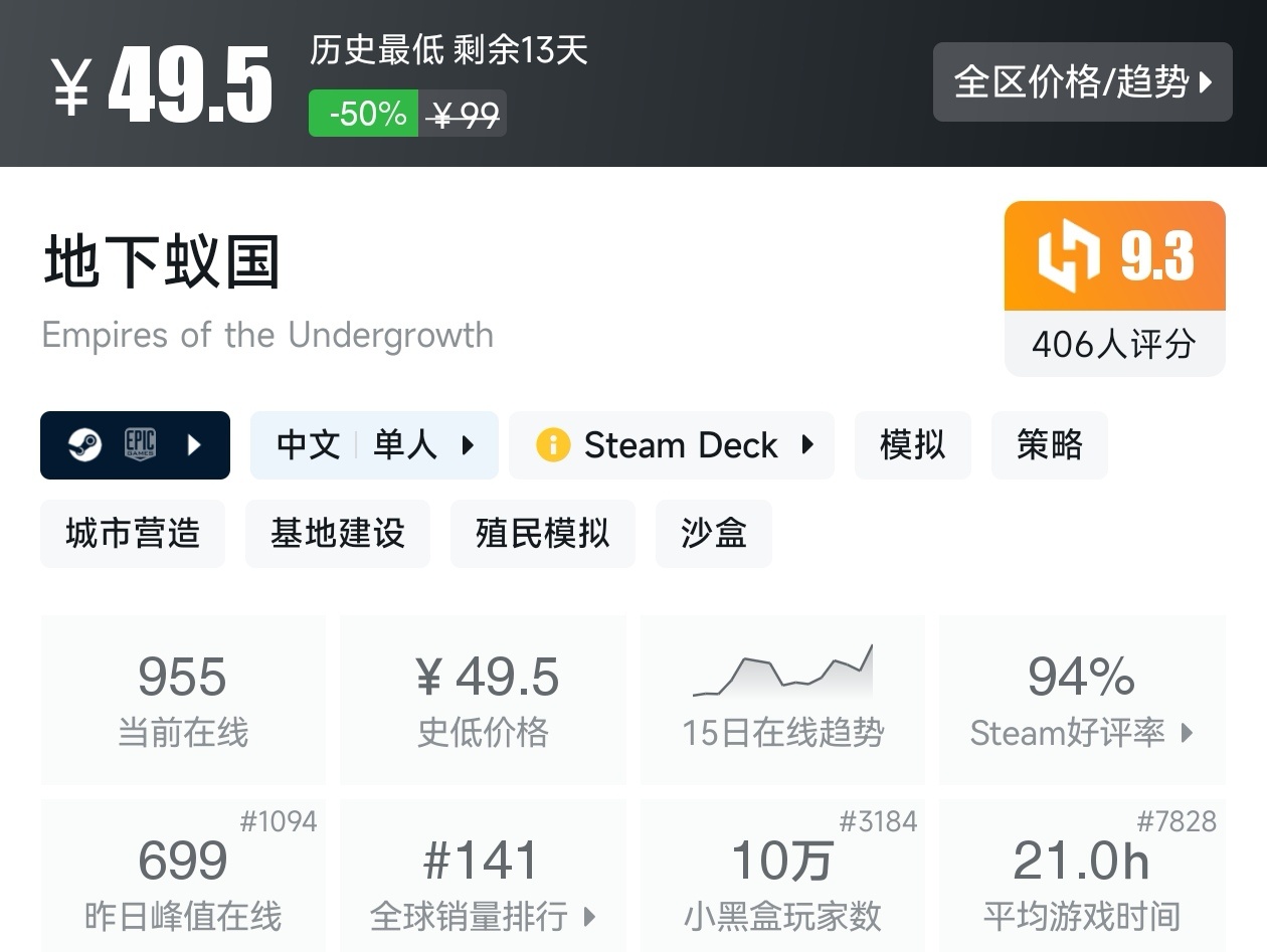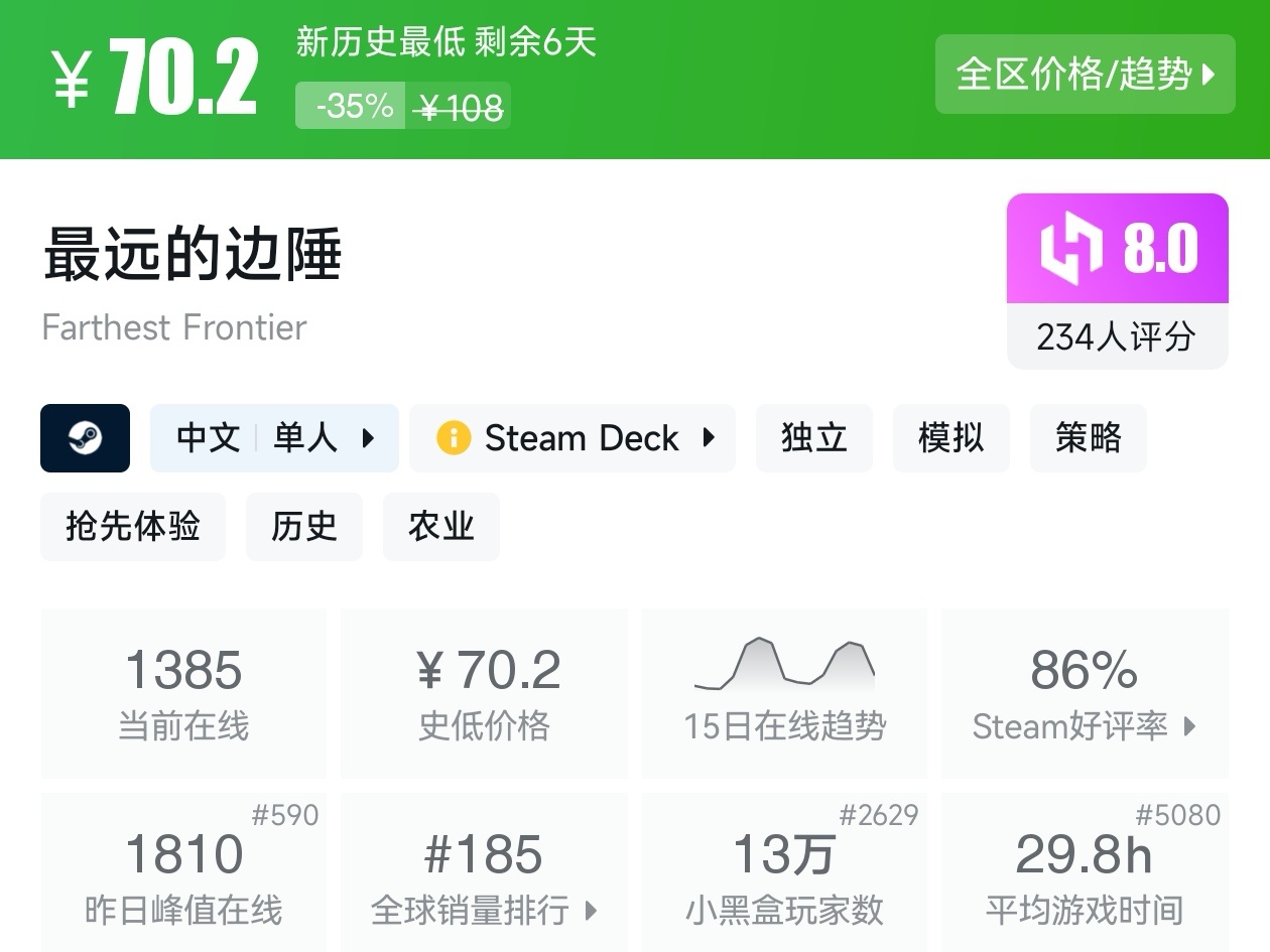 大家好,沒錯,又是我,你們的老朋友亦然,最近城市營造與殖民模擬遊戲節已經開始,有很多遊戲都參與了打折,當然有很多的史低遊戲,繼各位盒友的反饋後,我做這期史低遊戲的彙總,很多人都喜歡史低,希望我的彙總,能夠幫助各位盒友挑選心儀的遊戲。